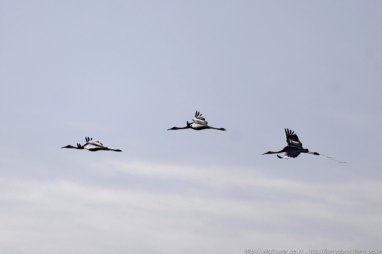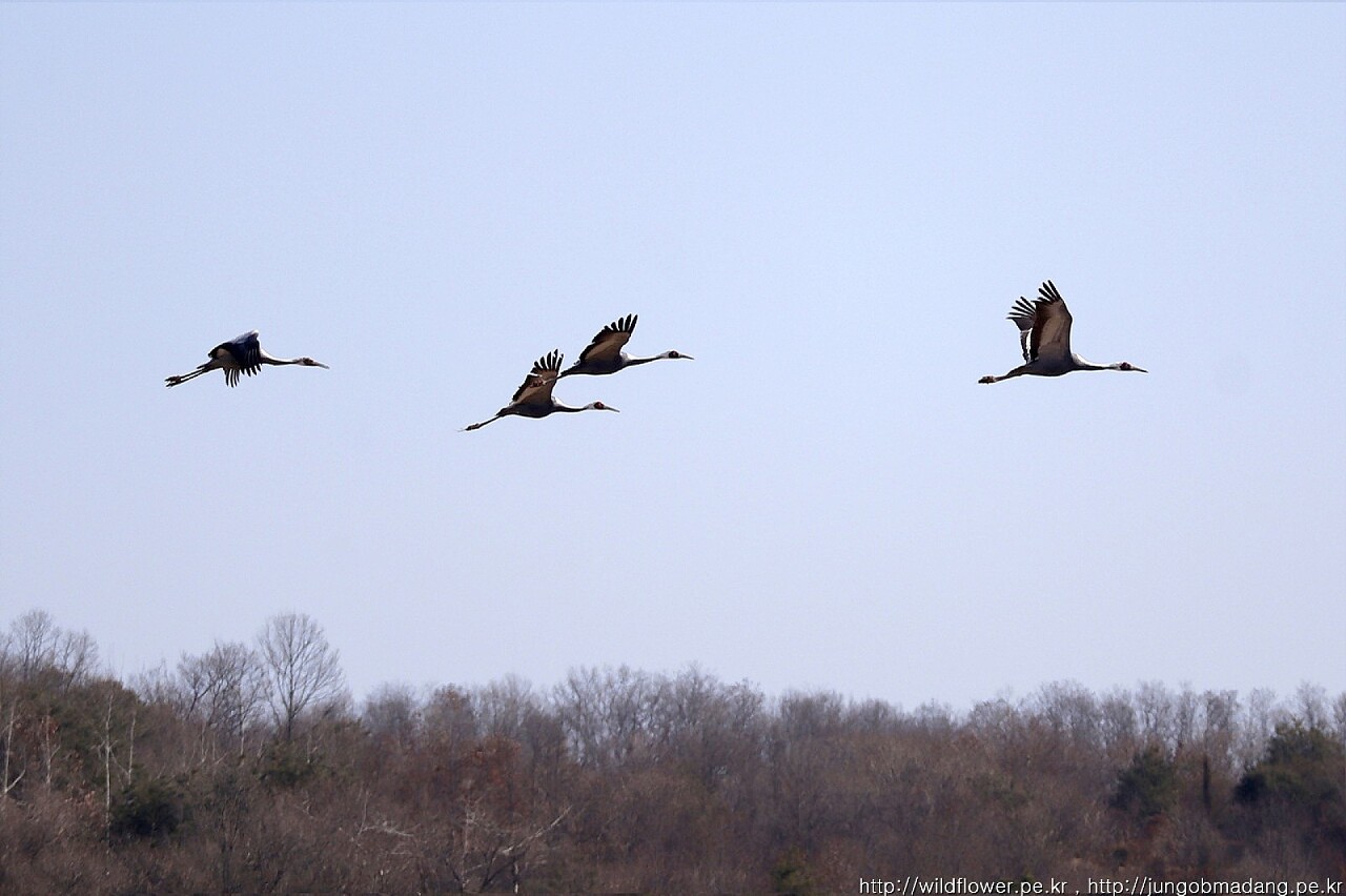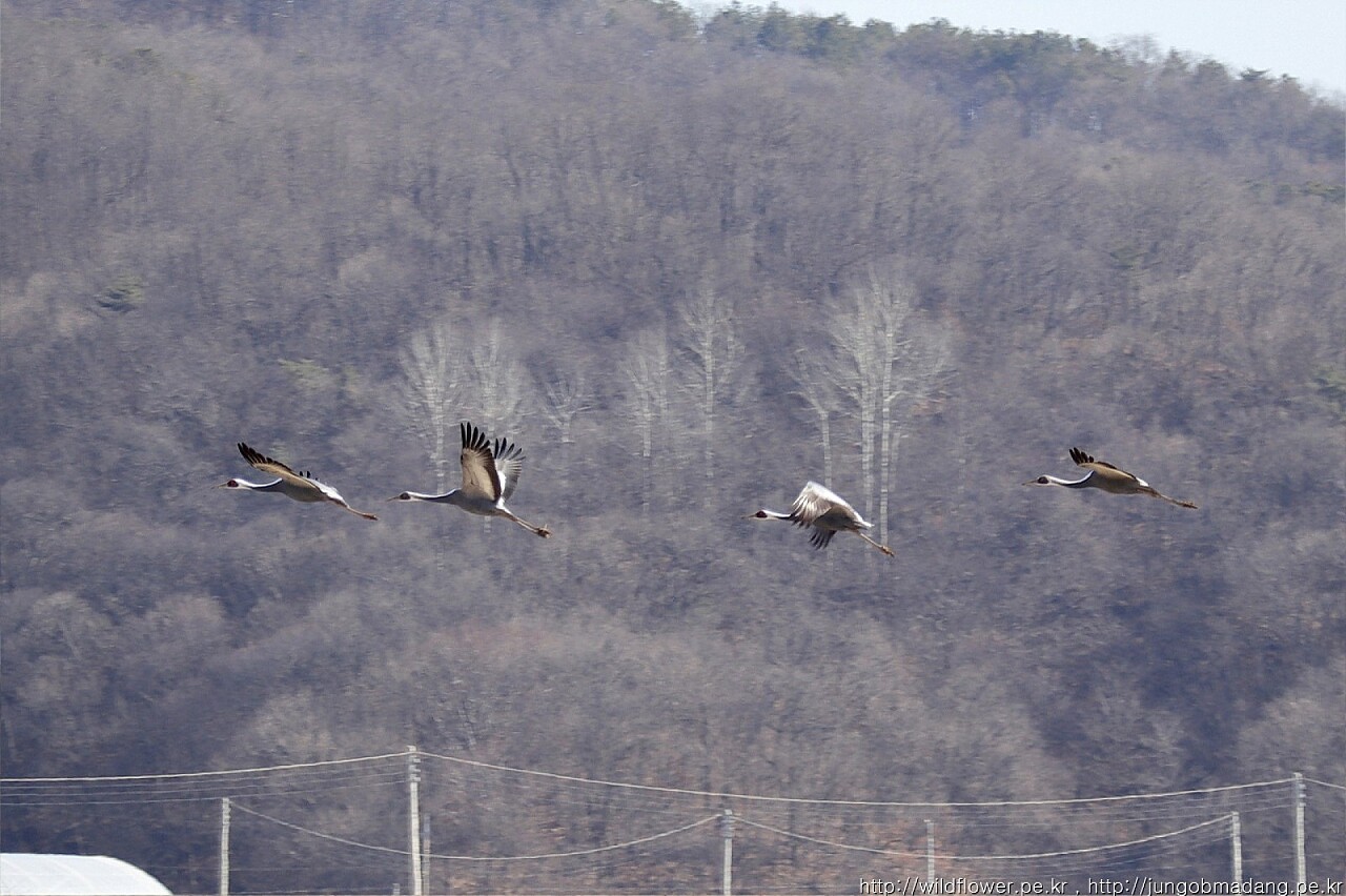 또 다른 포지션에도 좌측에 재두루미 두마리와 우측에 두루미 가족