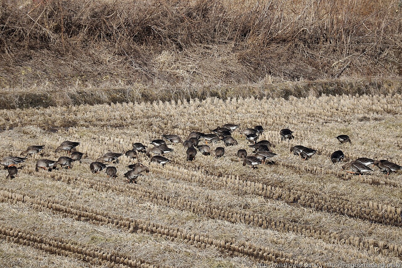 쇠기러기들이 조용히 낟알을 줍 줍 하고 있습니다.