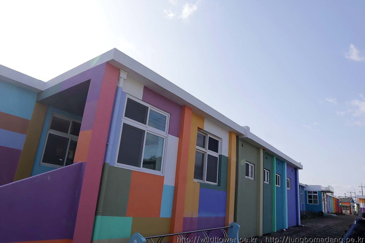 식사를 위해 하가리로 이동 중에 발견한 아기자기한 색상의 더럭초등학교