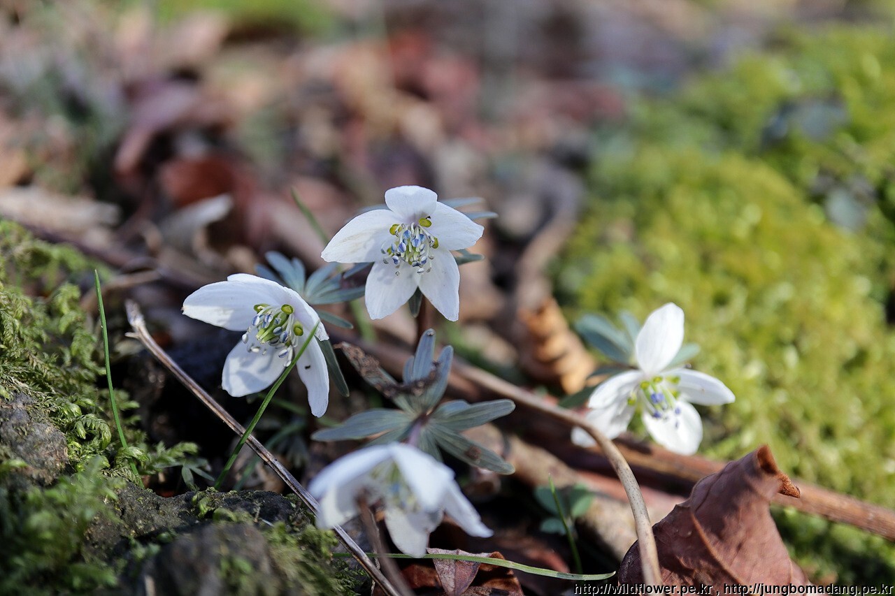 그거 아시나요? 변산바람꽃의 하얀 꽃잎 다섯장은 가짜꽃(허꽃)이고 진짜 꽃은 안에 연두색 깔개기 모양이라는 사실을요.