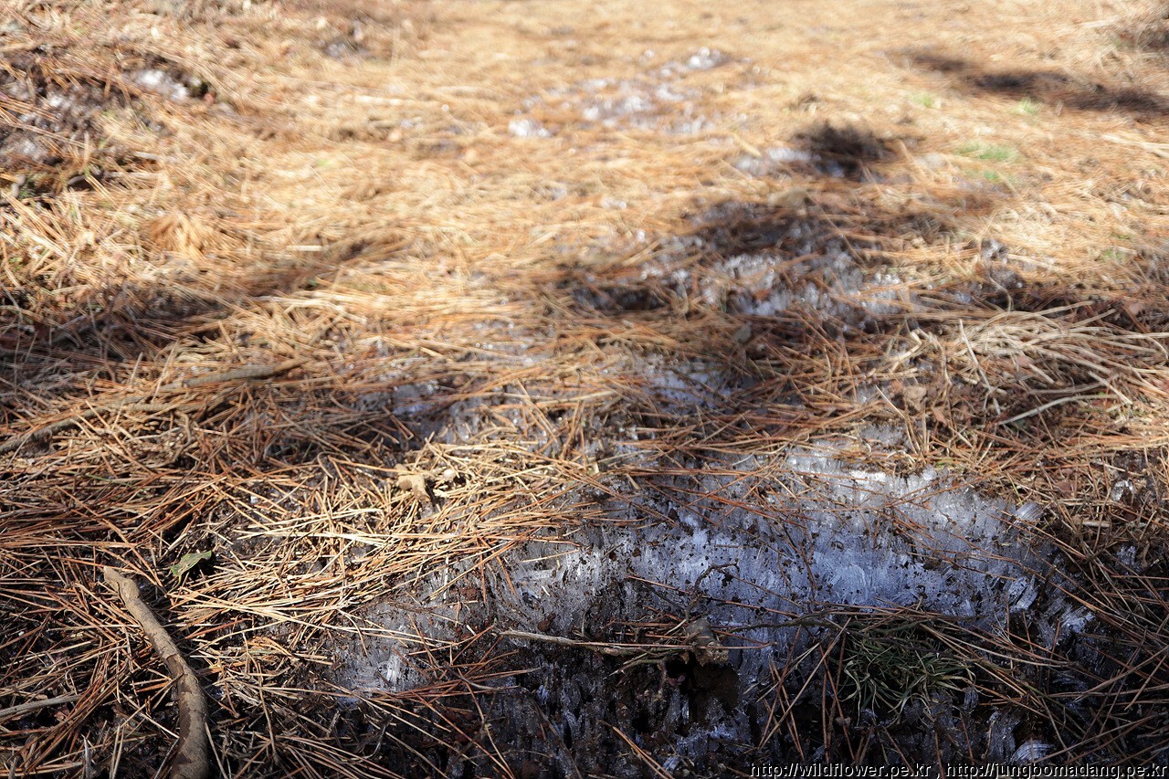 갑자기 몰려온 한파에 꽃 핀 그 곳을 갔는 데, 땅에 온통 서리꽃이 피어 있습니다.