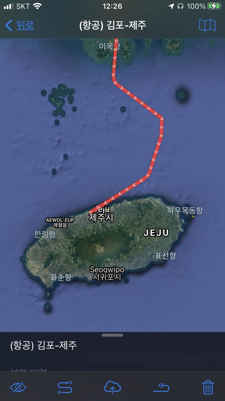 어플로 김포-제주간 거리며 착륙시간 기록해봅니다.