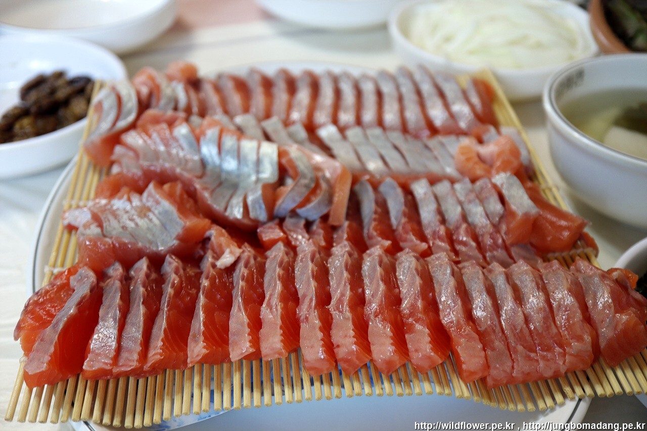 식사는 오랜만에 송어 먹으러 왔습니다. 장독대가 정겹네요.