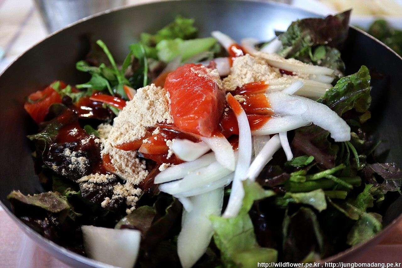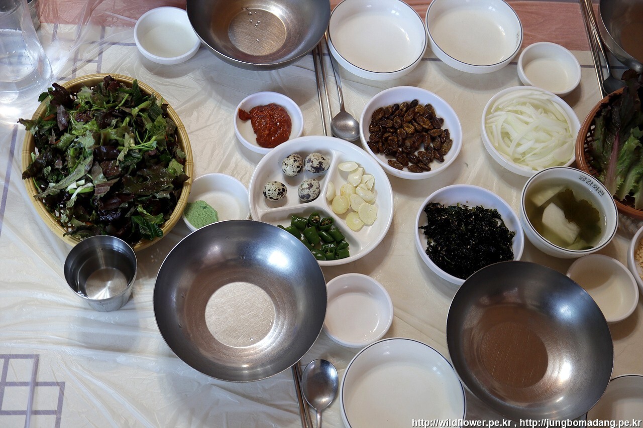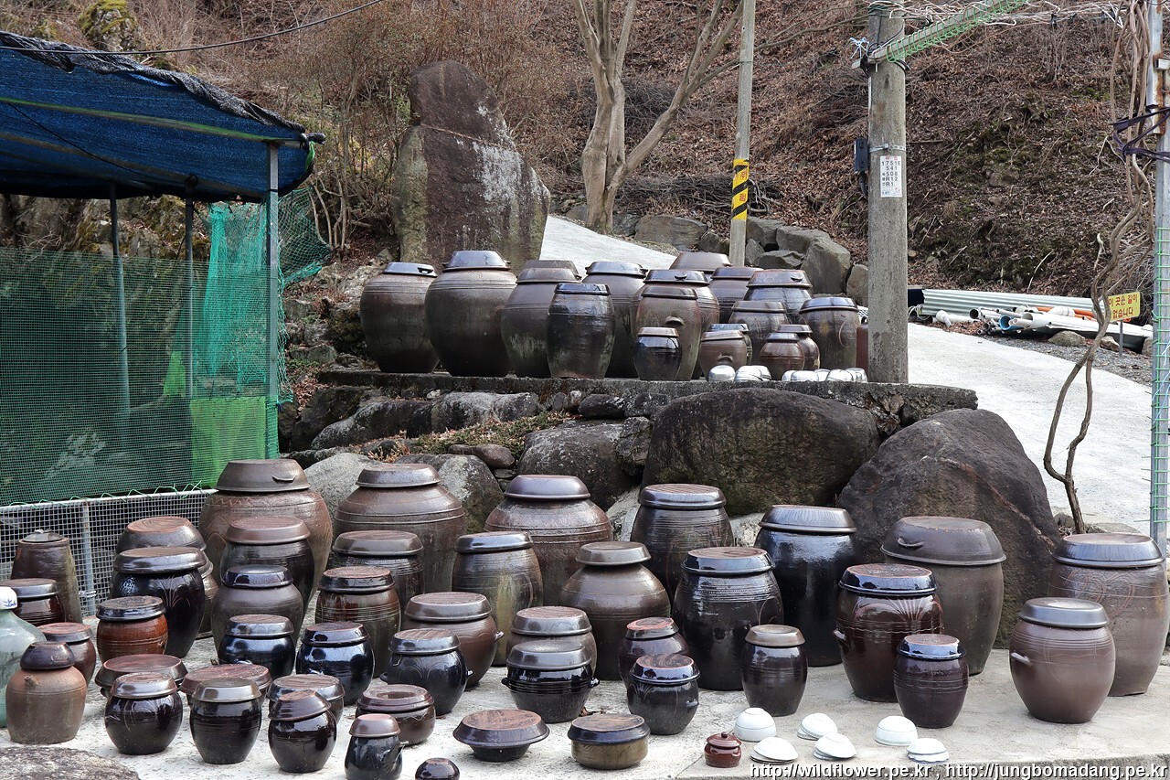 식사는 오랜만에 송어 먹으러 왔습니다. 장독대가 정겹네요.