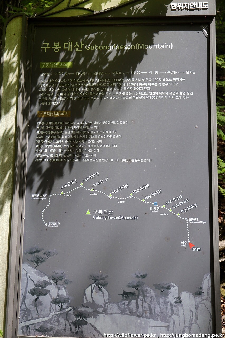 그렇게 널목재에서 11시 25분에 시작해서 9봉까지 1시간 33분 소요됩니다. 이제 하산 시간입니다.