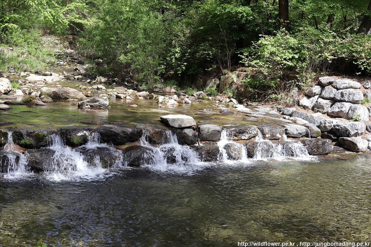 계곡 옆길로 잘 차려진 등산로를 걸어 갑니다.