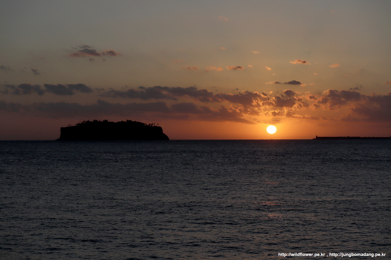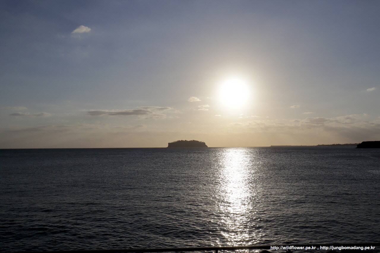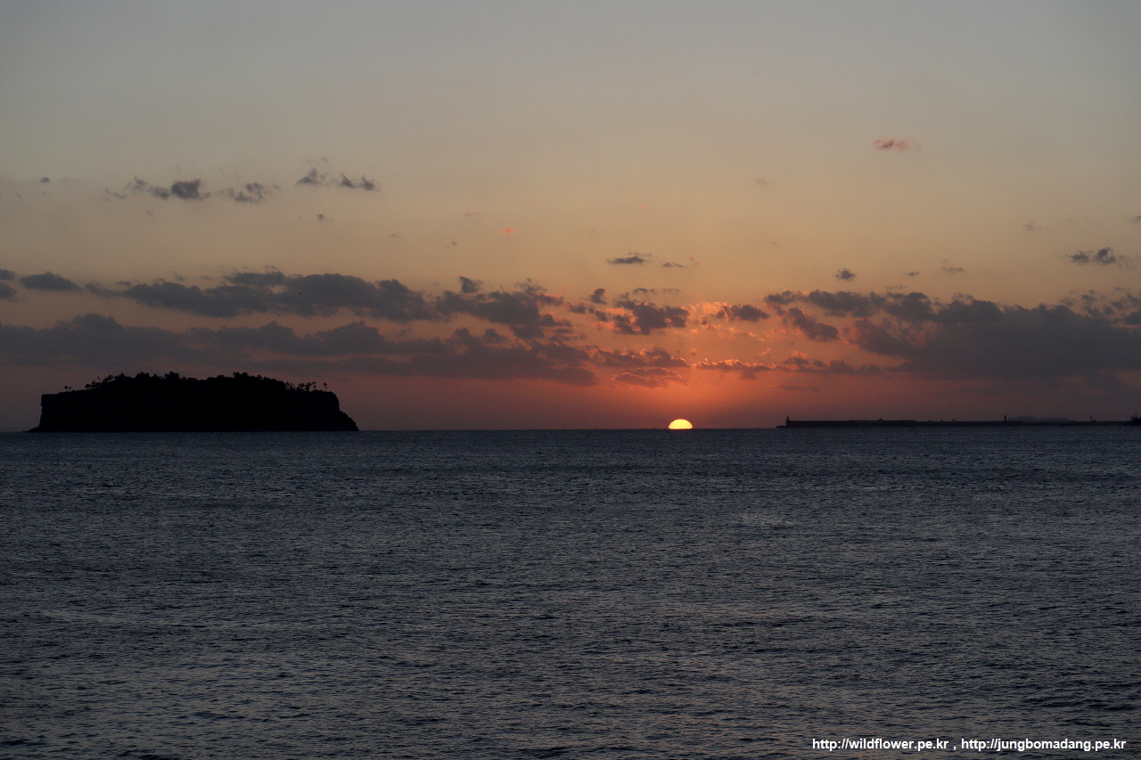 문섬 우측으로 햇님이 사라질 예정입니다.