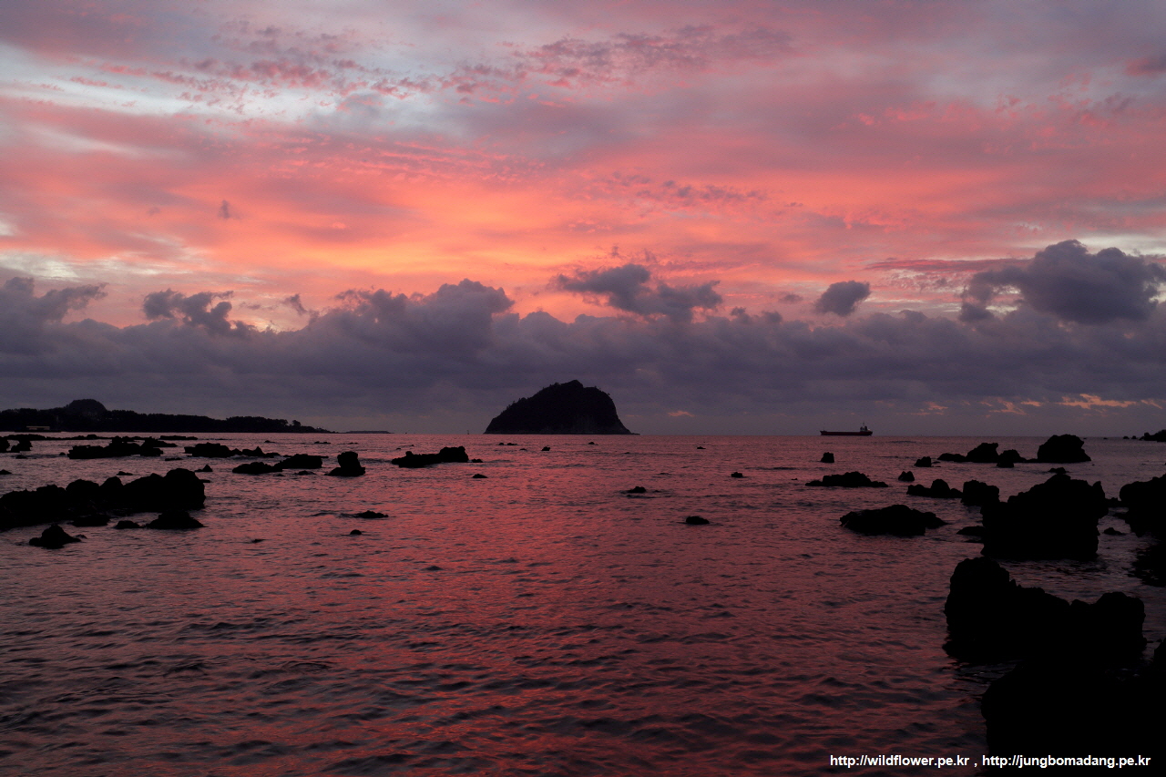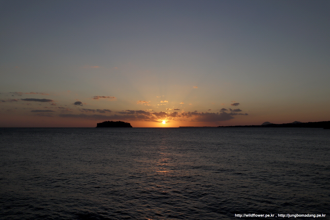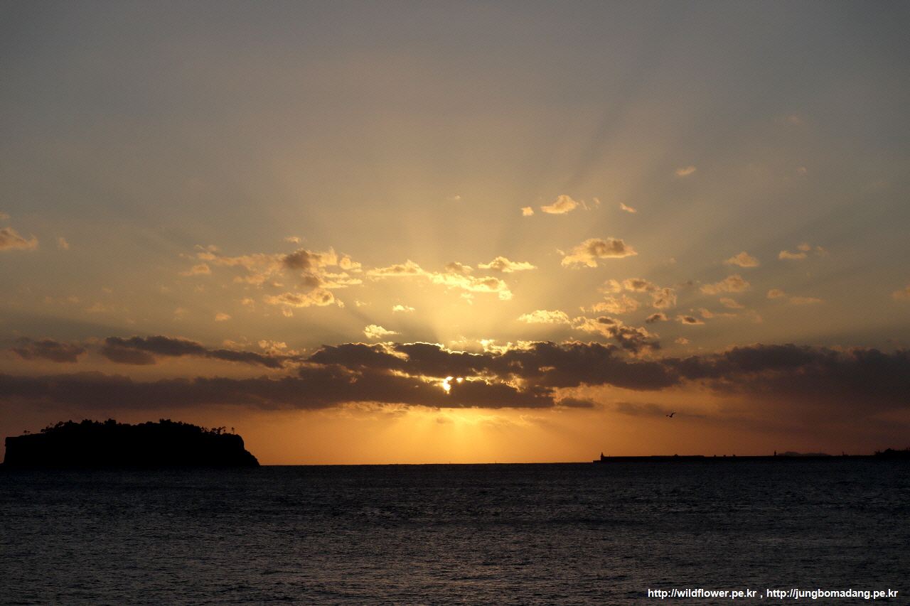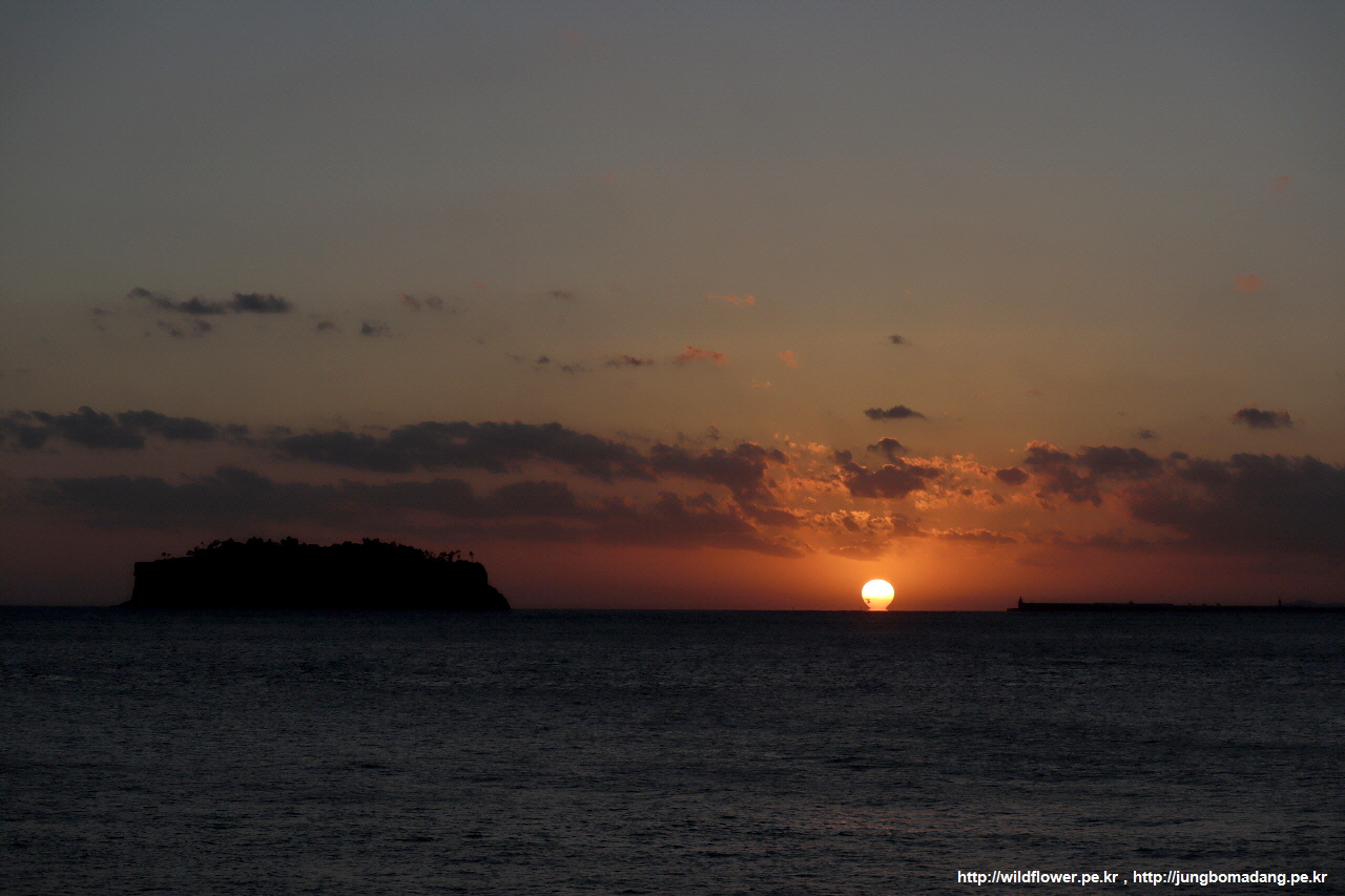 문섬 우측으로 햇님이 사라질 예정입니다.