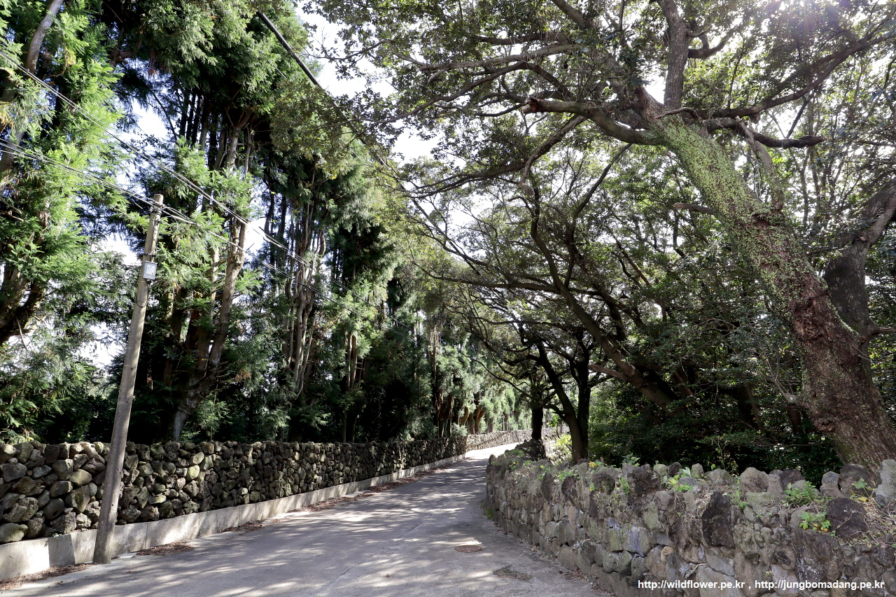 소담한 밭담과 쑥대낭이 어울어진 길