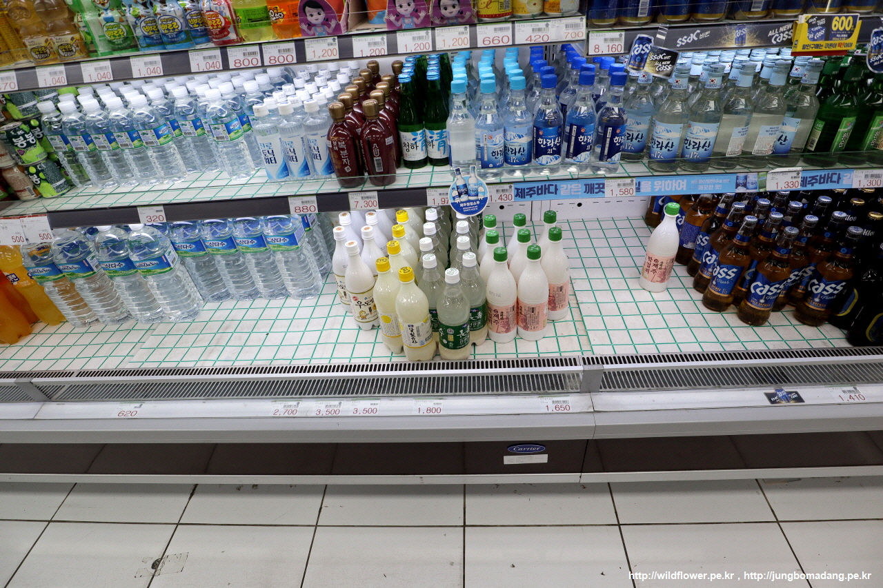 당연하지만 신기한 거 발견 했습니다. 여기서 서울 장수막걸리를 파는 데, 1800원에 파는 겁니다. 제주 막걸리 녹색 뚜껑은 1650원입니다. 여기까지 와서 제주막걸리 안마시고 서울 장수막걸리 마시는 분들 그럴 수도 있죠.