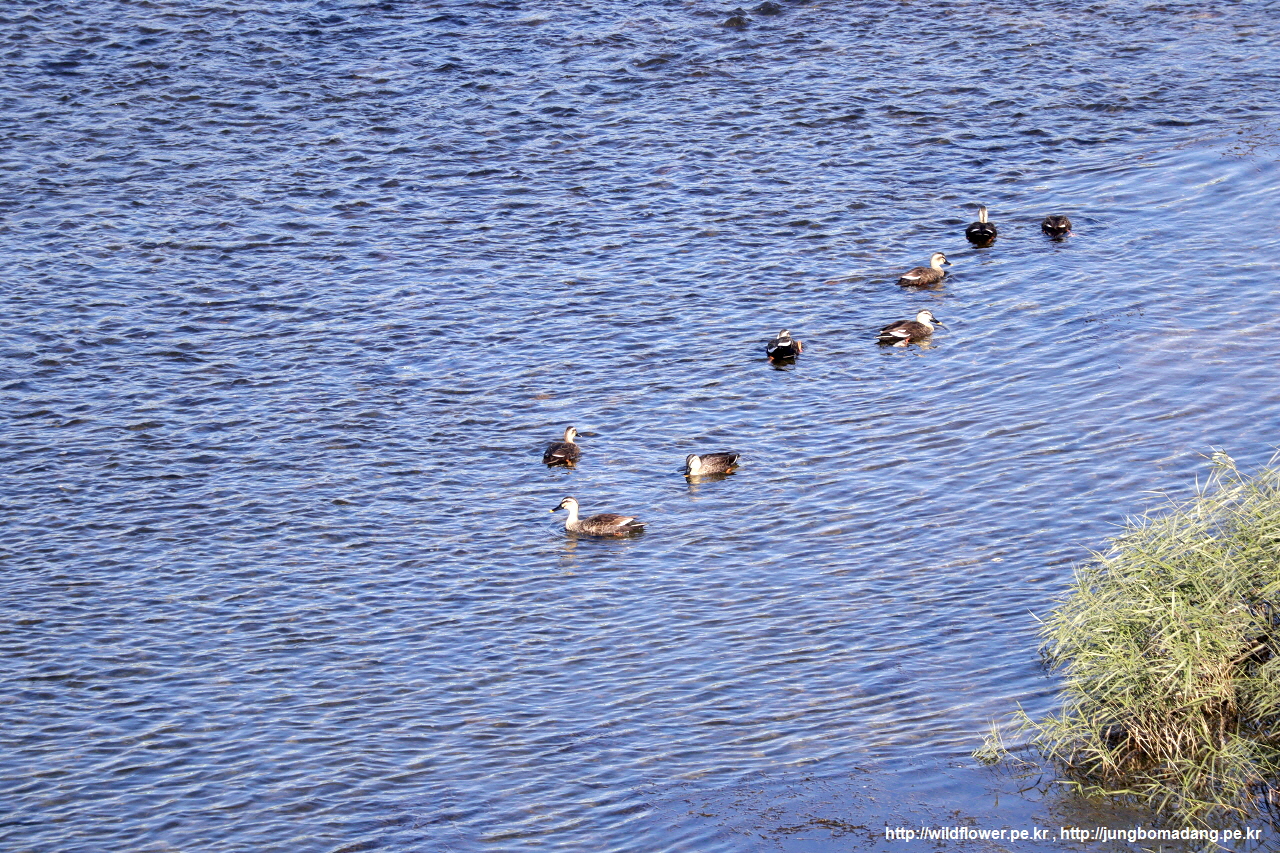 흰뺨검둥오리 - 문막교를 다시 넘어가는 데 섬강 위로 떠있습니다.