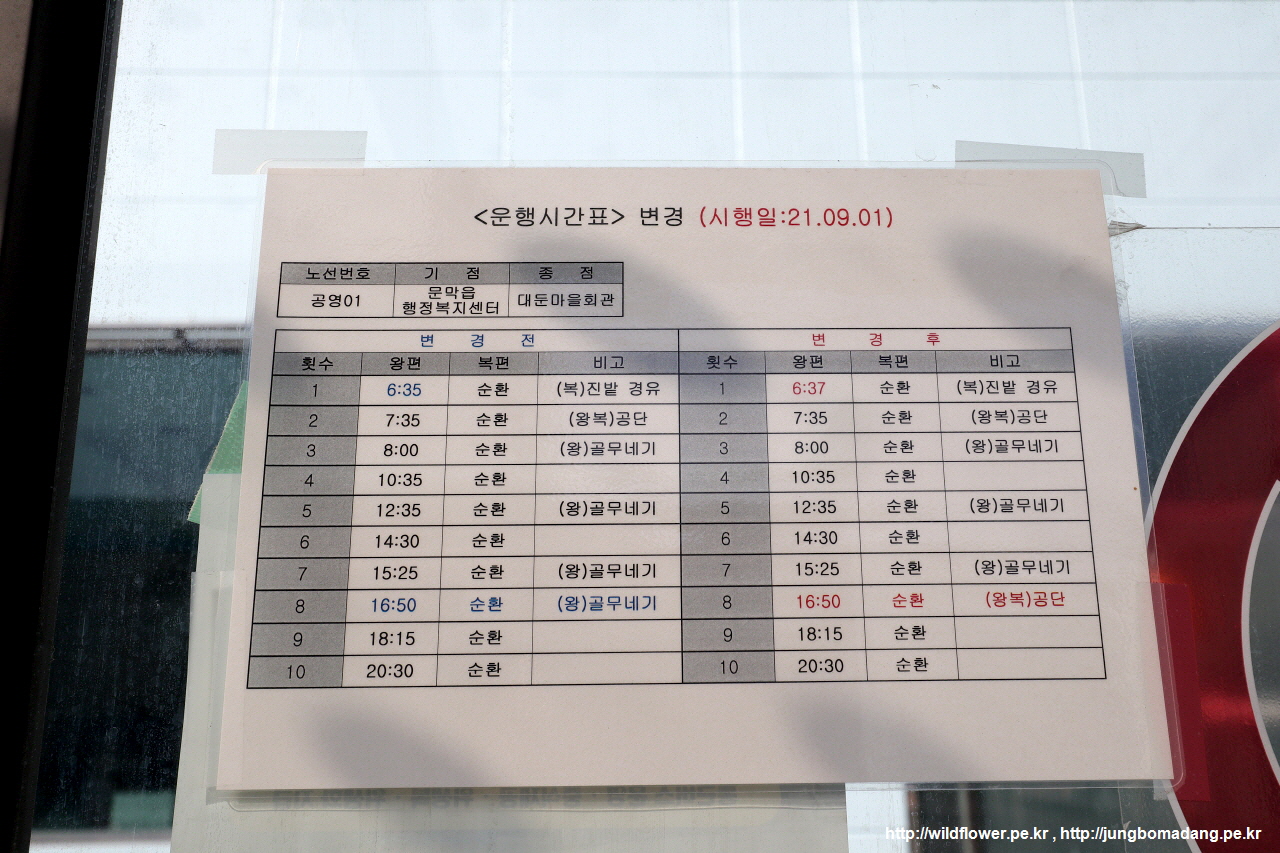 타려던 버스의 시간표. 버스 정류장에 제대로 좀 안내 했으면 좋겠습니다. 저같은 뚜벅이들 고생 좀 덜하게요.