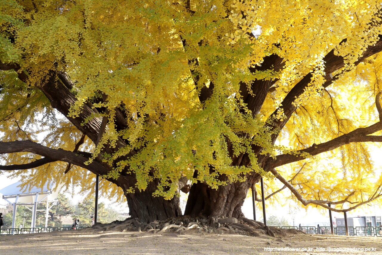 거대하고 웅장합니다. 그리고 시기를 잘 맞춰서 노란빛이 절정입니다. 바람이 심하게 불면 2~3일 내에 잎이 다 떨어지기도 합니다.