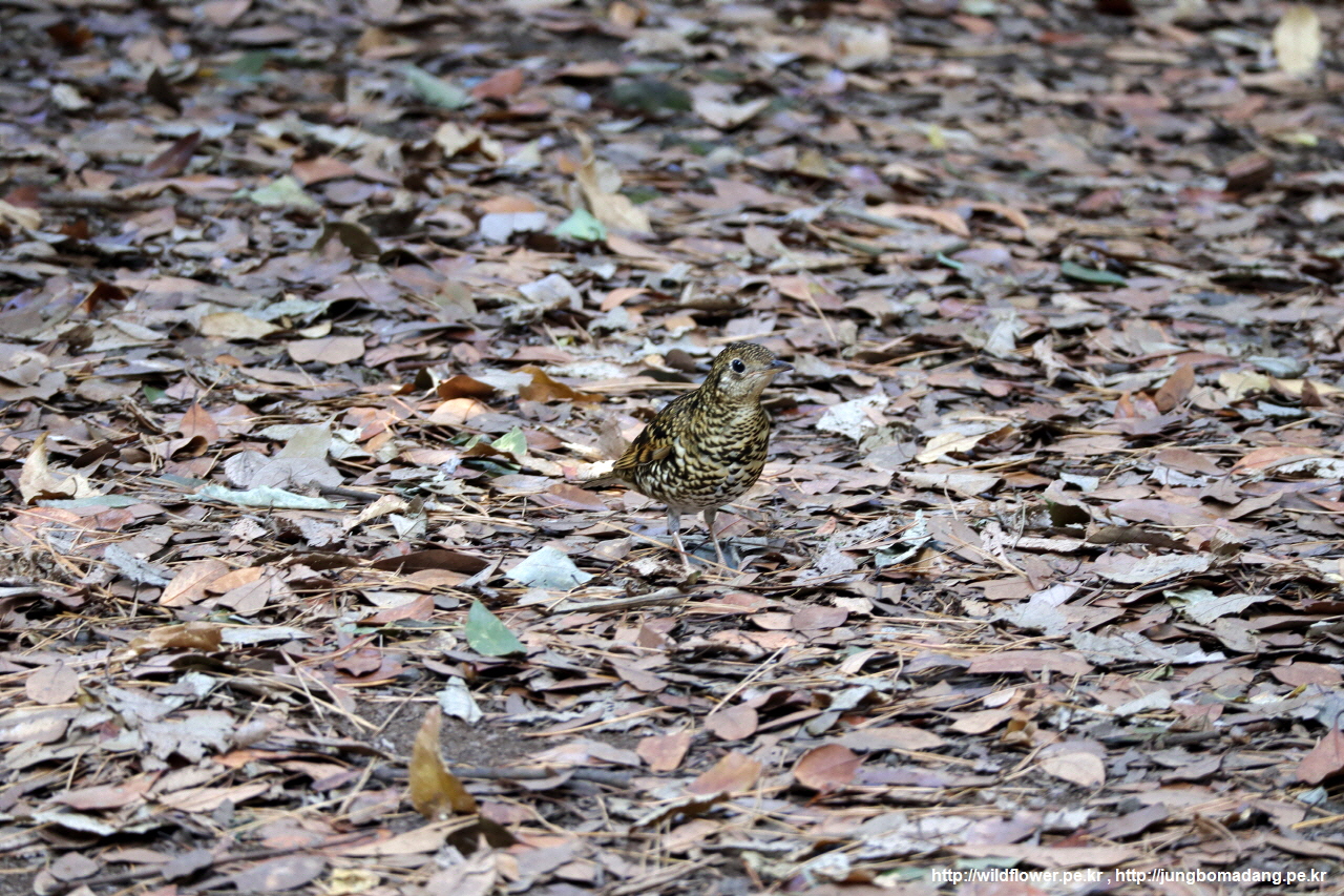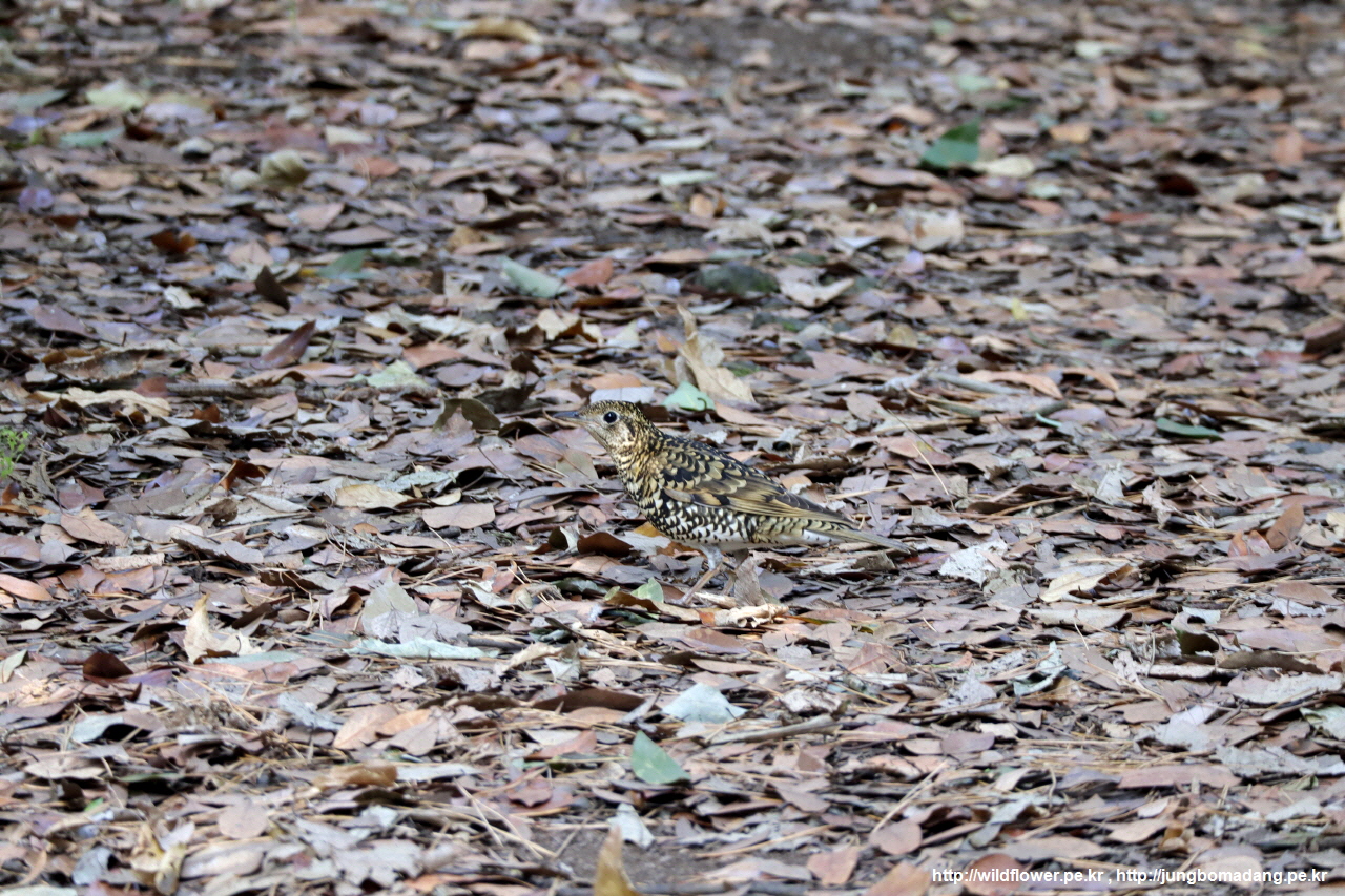호랑지빠귀 - 낙엽과 하나되어 잘 보이지 않습니다.