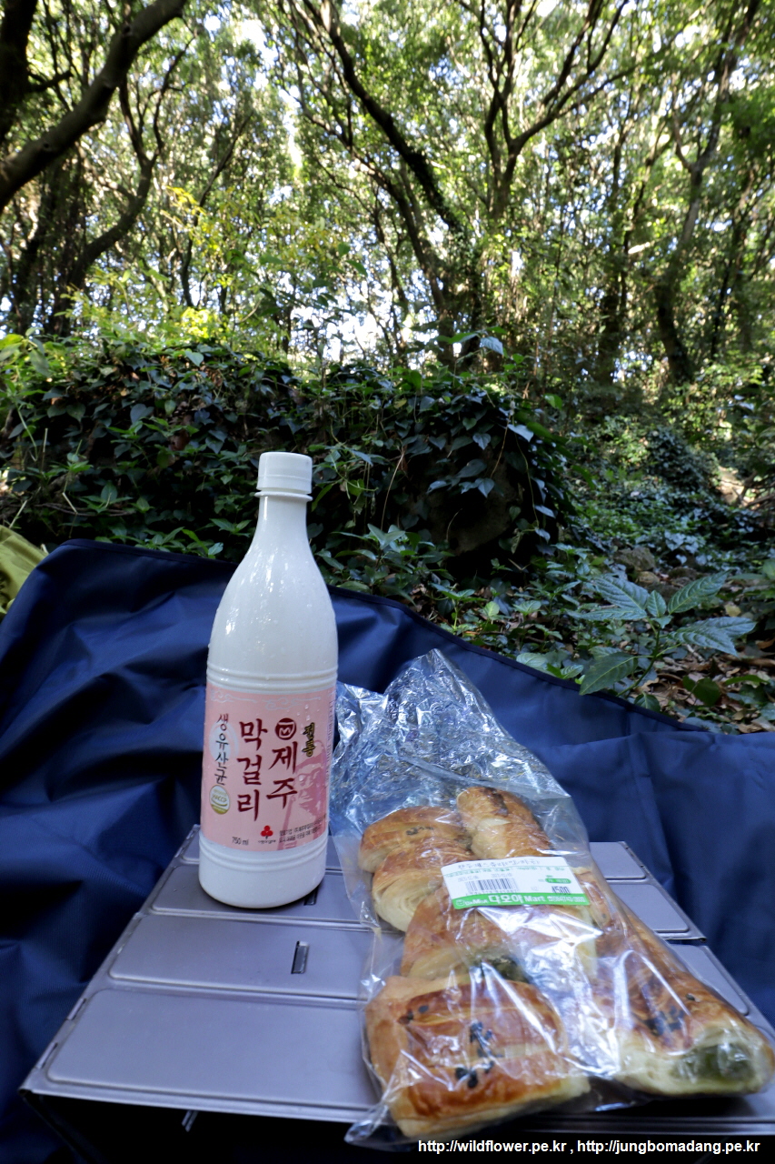 곧 점심을 먹어야 하지만, 잠시 멈추고 제주를 드링킹 합니다.