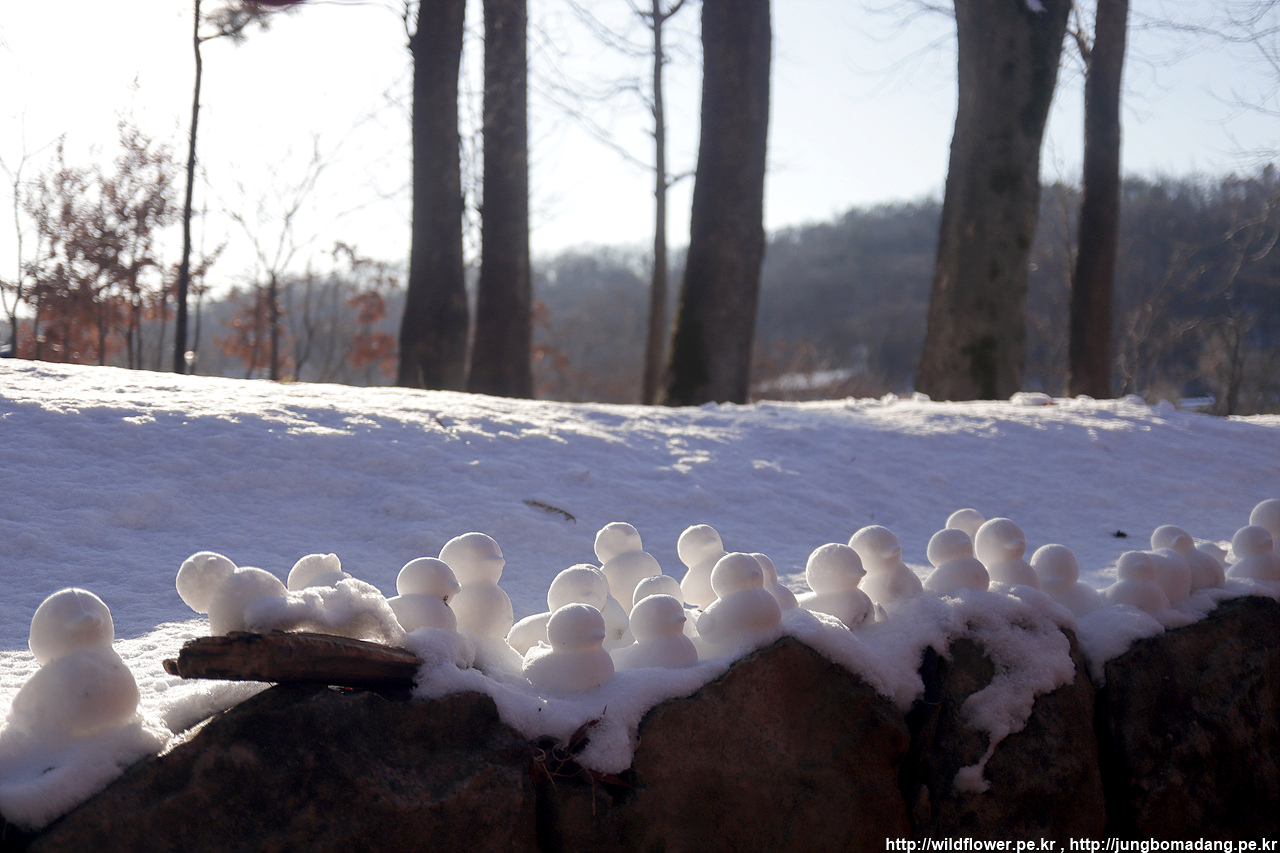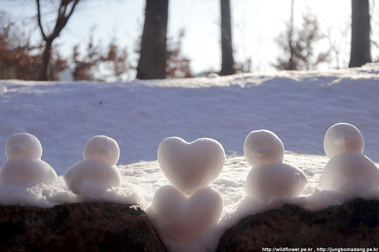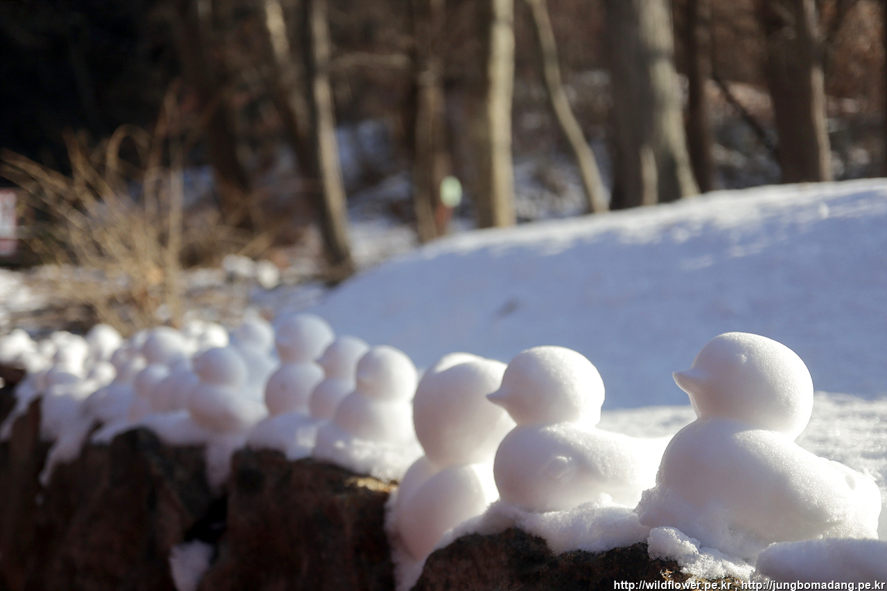 첨엔 눈사람인가 했는 데, 누가 러버덕을 공장에서 찍어 내듯이 눈으로 찍어서 진열해 두었네요