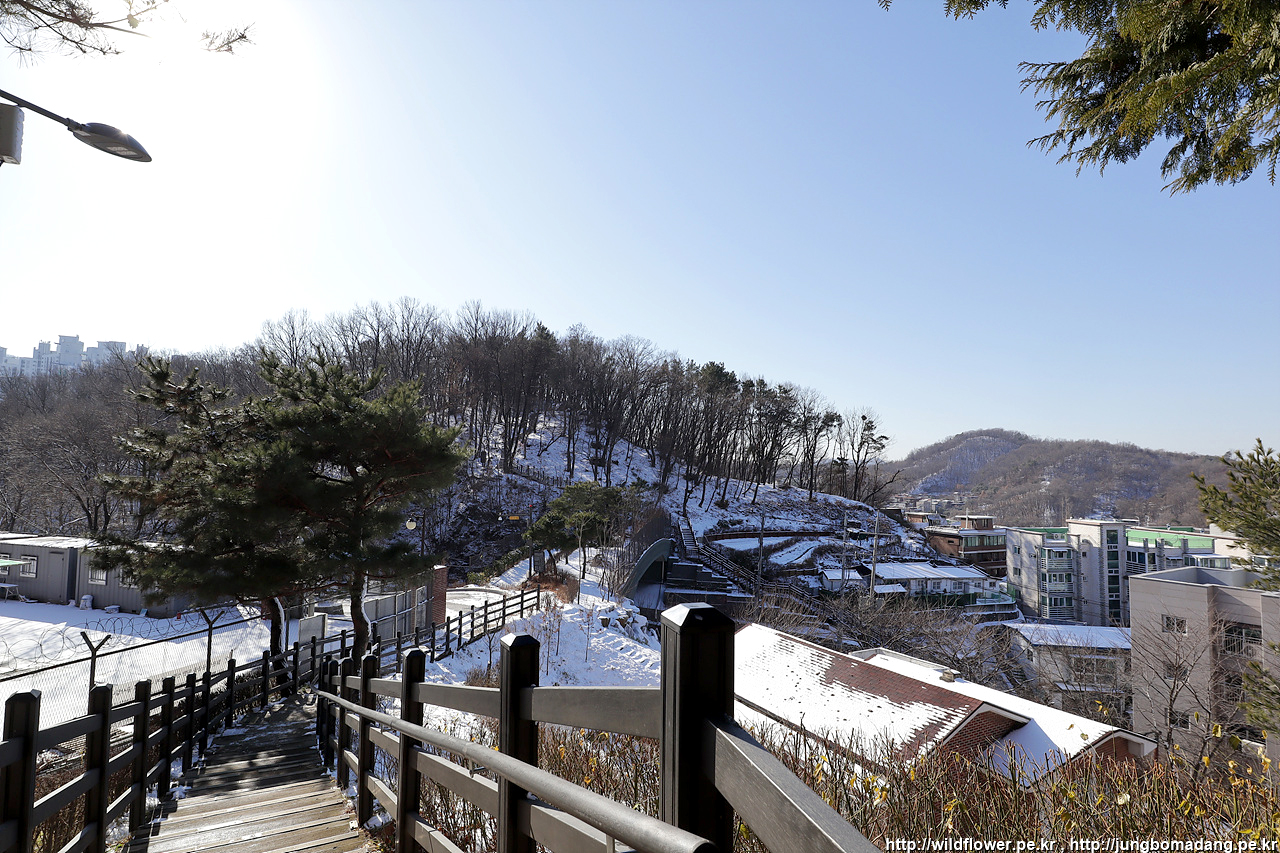 국제산장아파트. 2구간 끝나고 3구간 시작되는 곳인데 다리가 하나 생겼네요. 다리하나 생긴건 좋은 데, 언덕을 일부러 하나 넘게끔 해두었네요. 예전에 참 편하게 걷던 길을 산행길로 만들기 있기? 없기? 담당 공무원은 생각 있어? 없어?