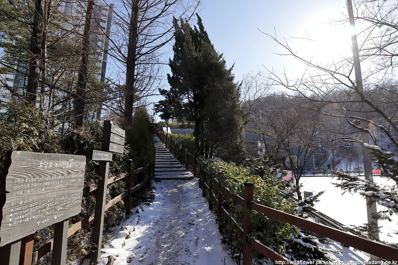 하늘공원이라는 곳을 지나는 데, 예전에는 없던 데크길과 다리가 생겼습니다. 그 외 야자매트로 많이 설치 되었구요.