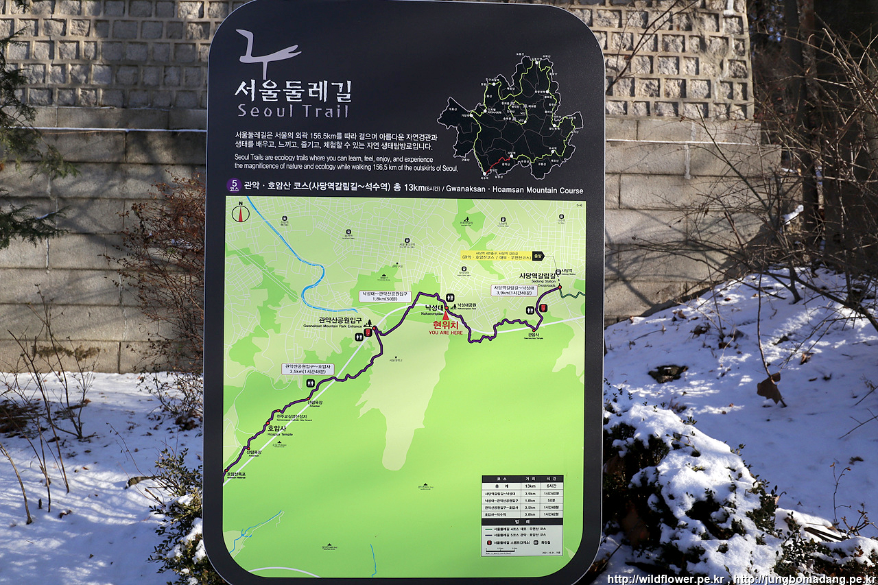 관악산 둘레길 2코스 표시