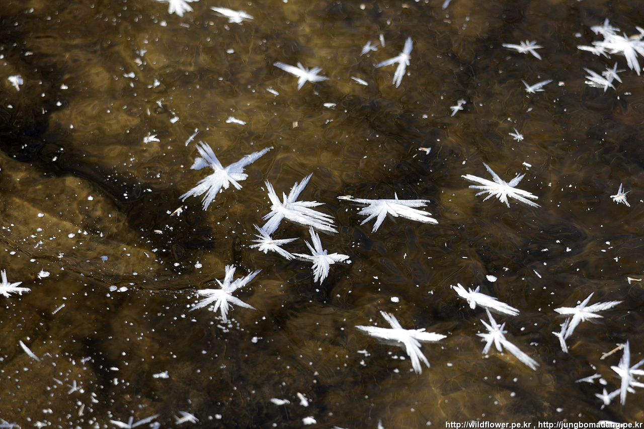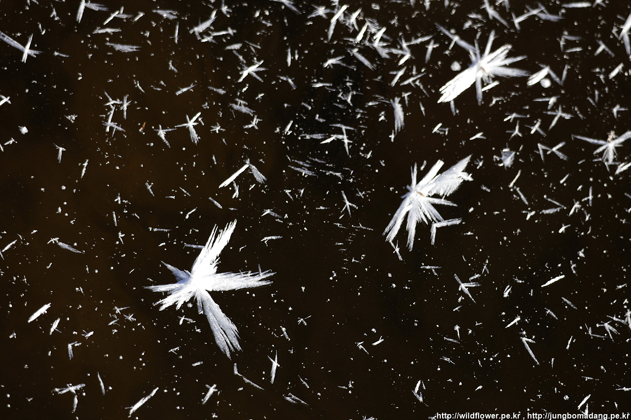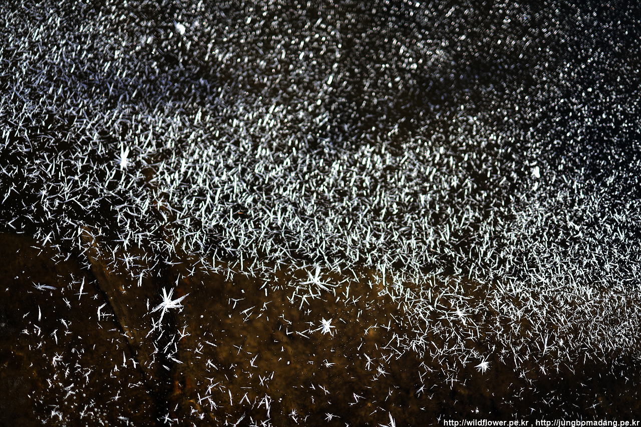 얼음위에 떨어진 서리꽃들이 마치 두루미가 비상하는 모습같이 보이네요.
