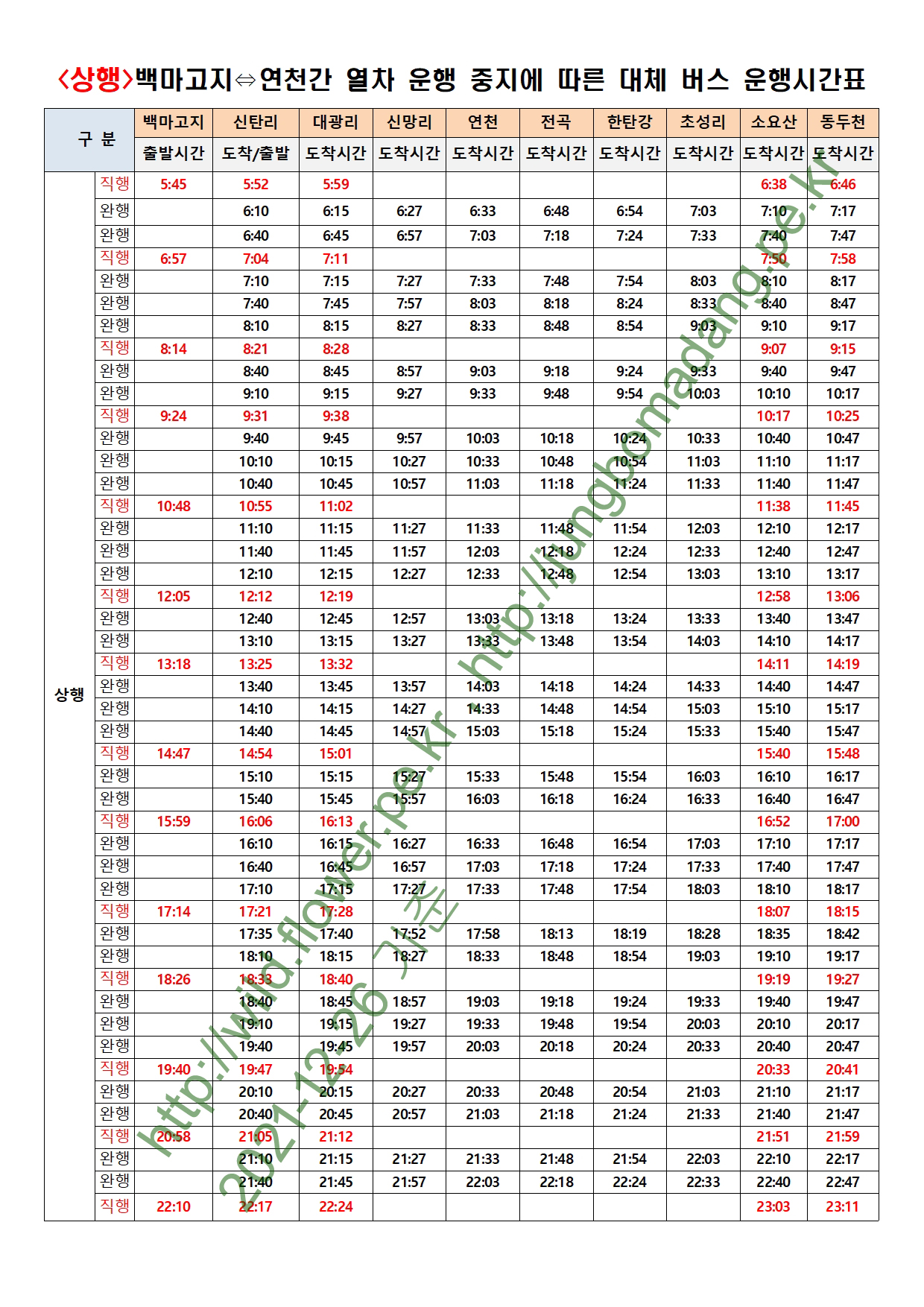 참고로 동두천역과 백마고지역 셔틀버스 시간표는 아래와 같습니다. hwp 파일을 보기 편하게 jpg 파일로 변환했습니다.