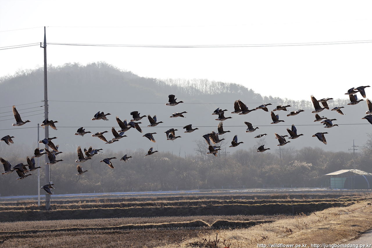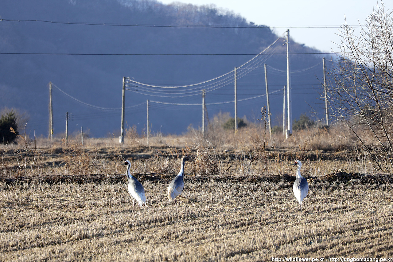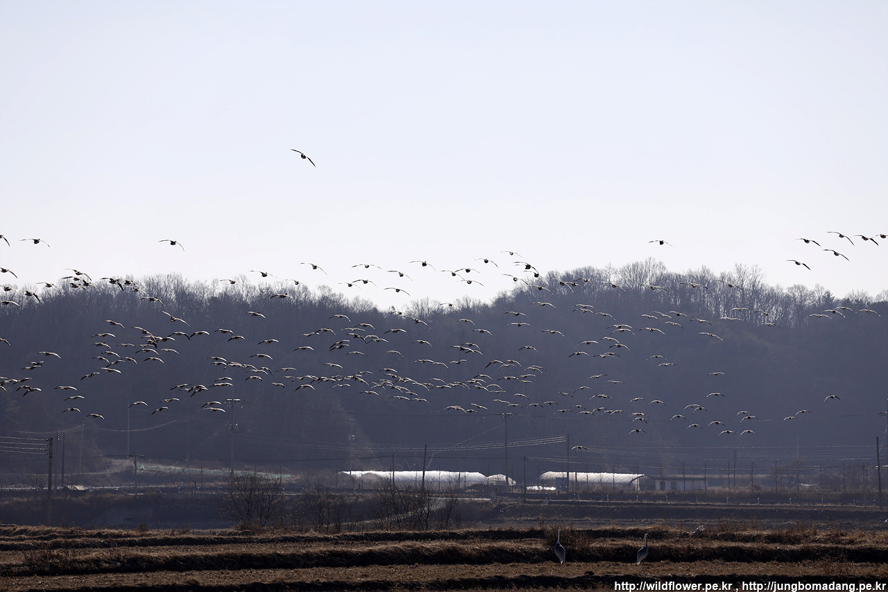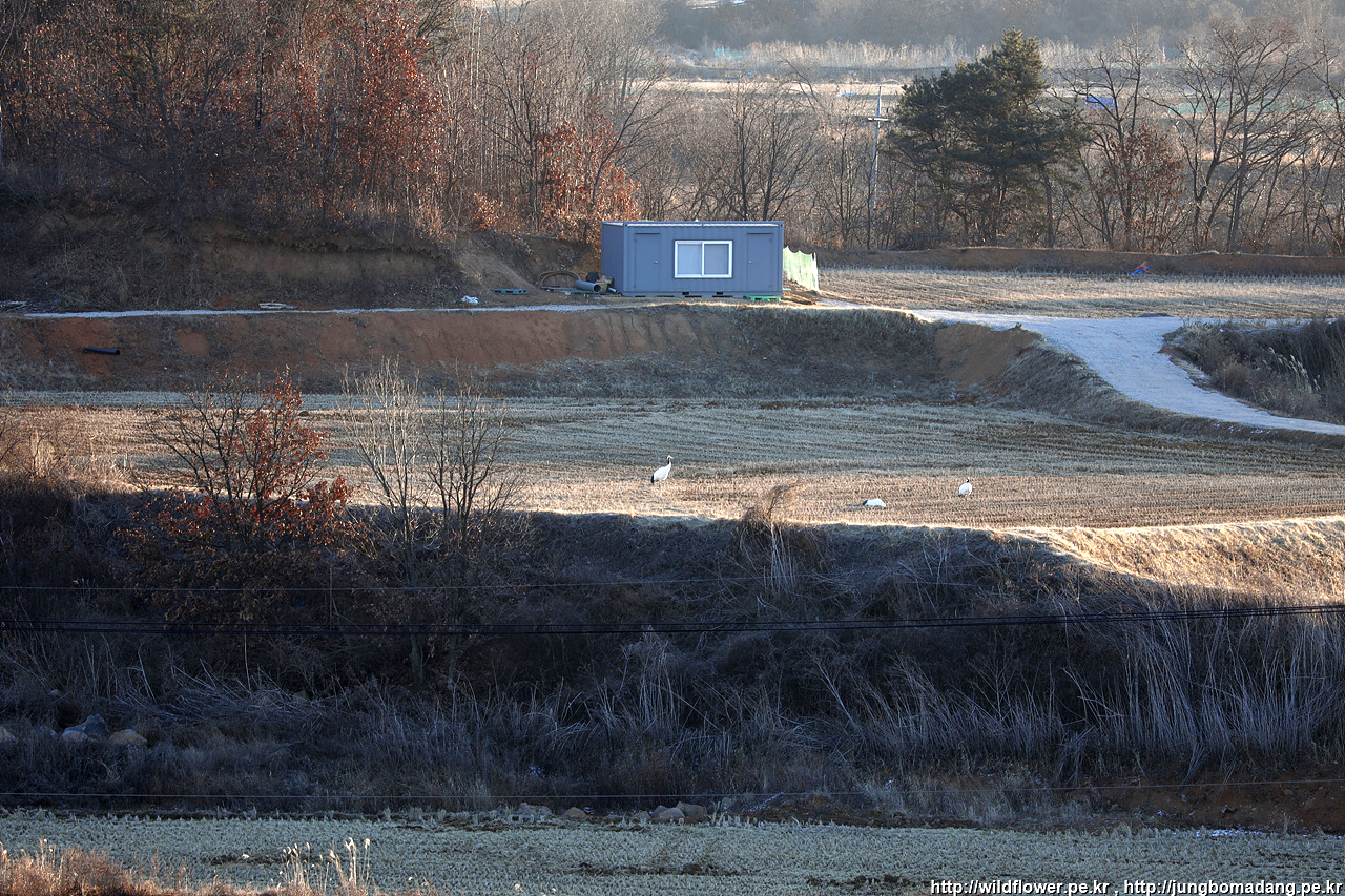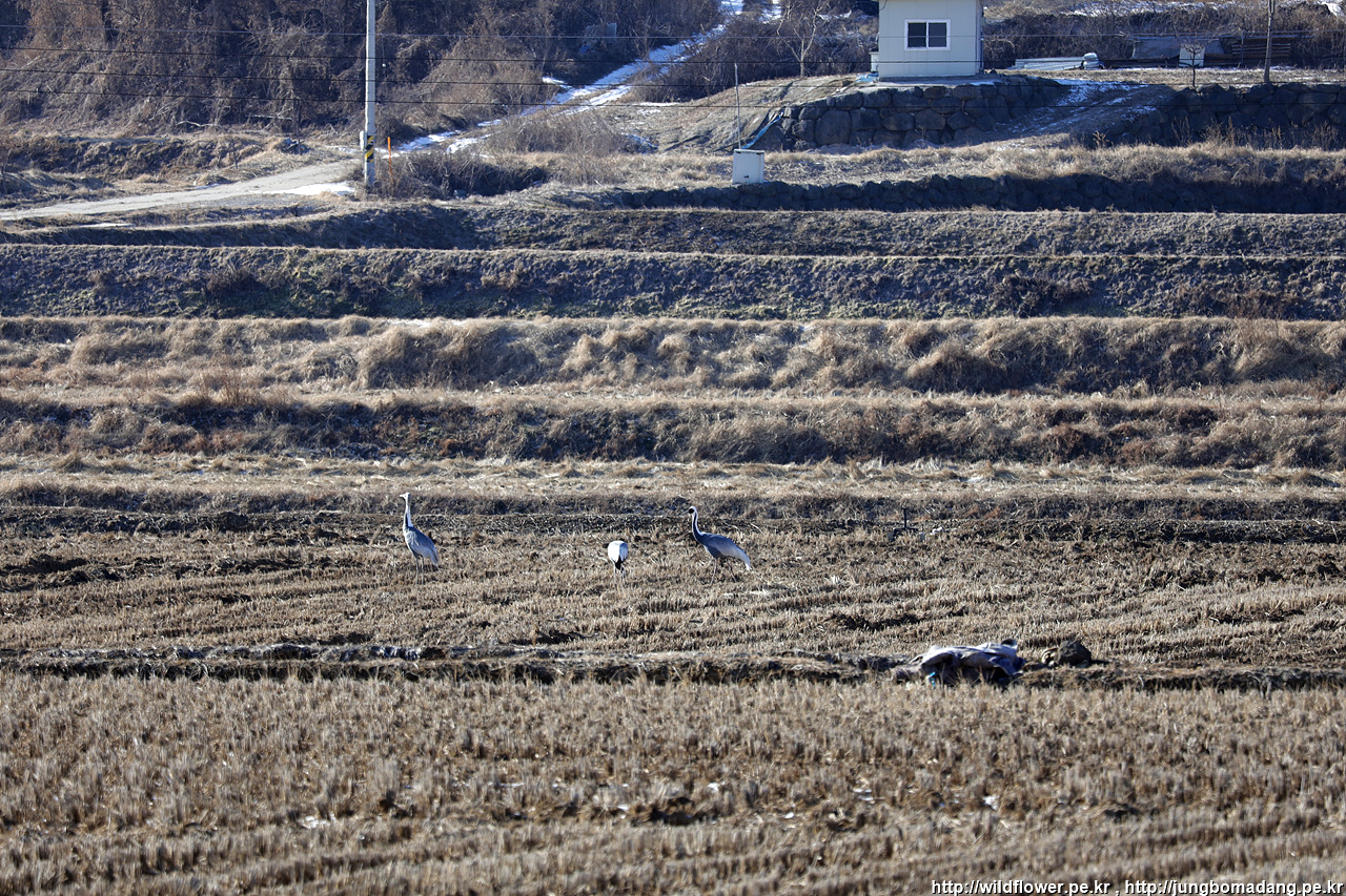 작년과는 시기가 다른지 개체수가 많지 않네요. 민통선 안에 있는 한무리의 두루미(학) 가족을 망원(100-400mm)으로 땡겨보지만 만족스럽지 않네요.