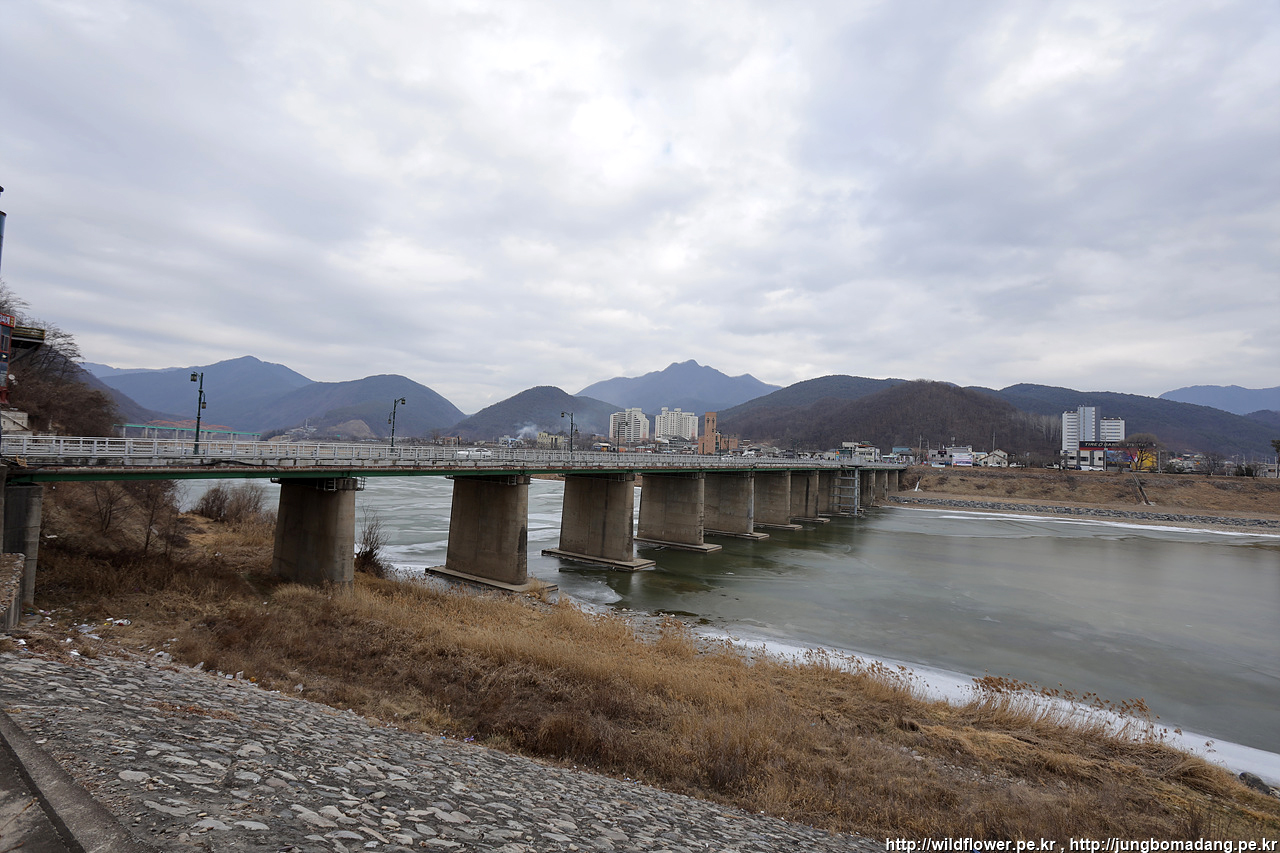 영월대교 지나면서 바라본 동강대교. 어제 야경의 주인공은 동강대교입니다. 동강대교가 영월대교 훨씬 큰데 이름이 헤깔리면 동강에 정선, 영월이 속해 있어 동강이 훨씬 큰 의미이므로 큰 다리는 동강대교, 그 옆 작은 다리는 영월대교로 이해하시면 되겠습니다. 참고로 영월읍 좌측에서 서강, 우측에서 동강이 흘러와서 아래로 남한강으로 분기가 됩니다.