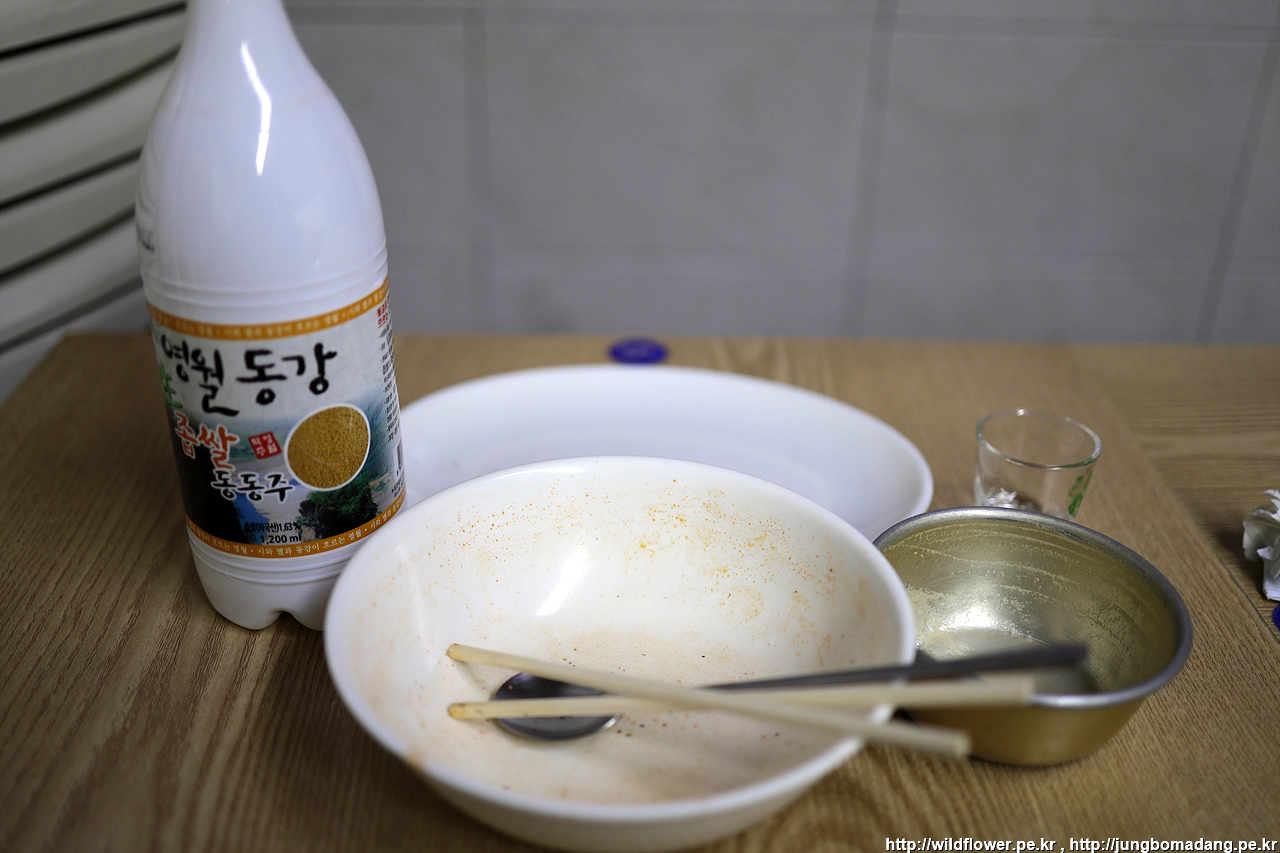 사장님이 바뀌었네요. 맛은 그대로입니다. 근데 뭔가 버벅이는 느낌이 있네요. 메밀전병 2개, 수수부꾸미 1개, 올챙이국수 1개, 좁쌀동동주 1병 주문합니다.
