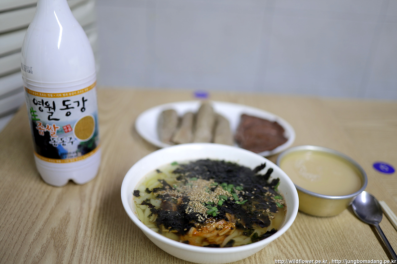 사장님이 바뀌었네요. 맛은 그대로입니다. 근데 뭔가 버벅이는 느낌이 있네요. 메밀전병 2개, 수수부꾸미 1개, 올챙이국수 1개, 좁쌀동동주 1병 주문합니다.