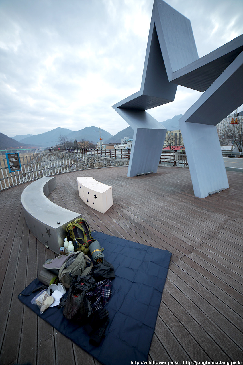 짐 정리를 마치고, 하룻밤 지내게 해준 장소에 고맙고 미안해서 데크 여기 저기 떨어진 쓰레기며 담배꽁초 주워 봅니다.