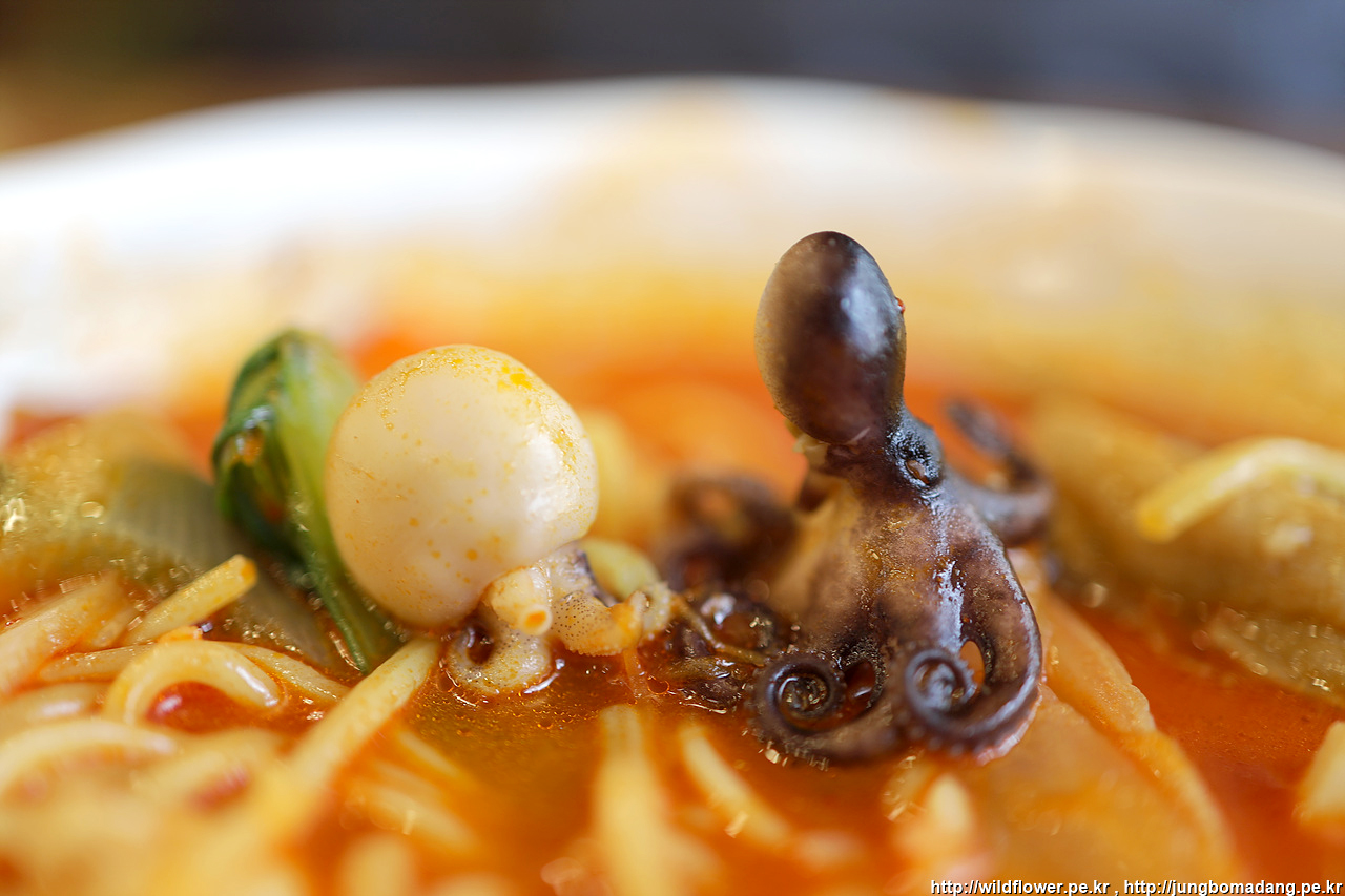 소갈비 어딨지? 하고 수색에 돌입하고 나서 찾은 세덩어리의 소갈비. 국물 한입 딱 뜨니 제일 와닫는 느낌은 좀 짜다. 참고로 본인이 음식을 슴슴하게 먹는 걸 선호하다 보니 이것은 지극히 제 주관적인 느낌임을 알려 드립니다. 그리고 가격에 걸맞게 내용물(쭈꾸미, 갑오징어?, 오징어, 죽순, 청경채, 파프리카, 피망, 호박, 양송이버섯, 양파, 배추 등등)도 그득