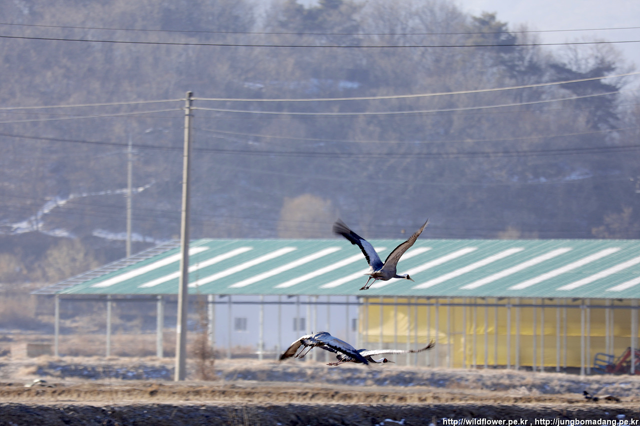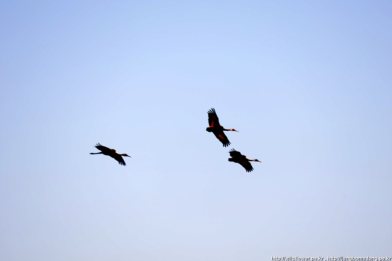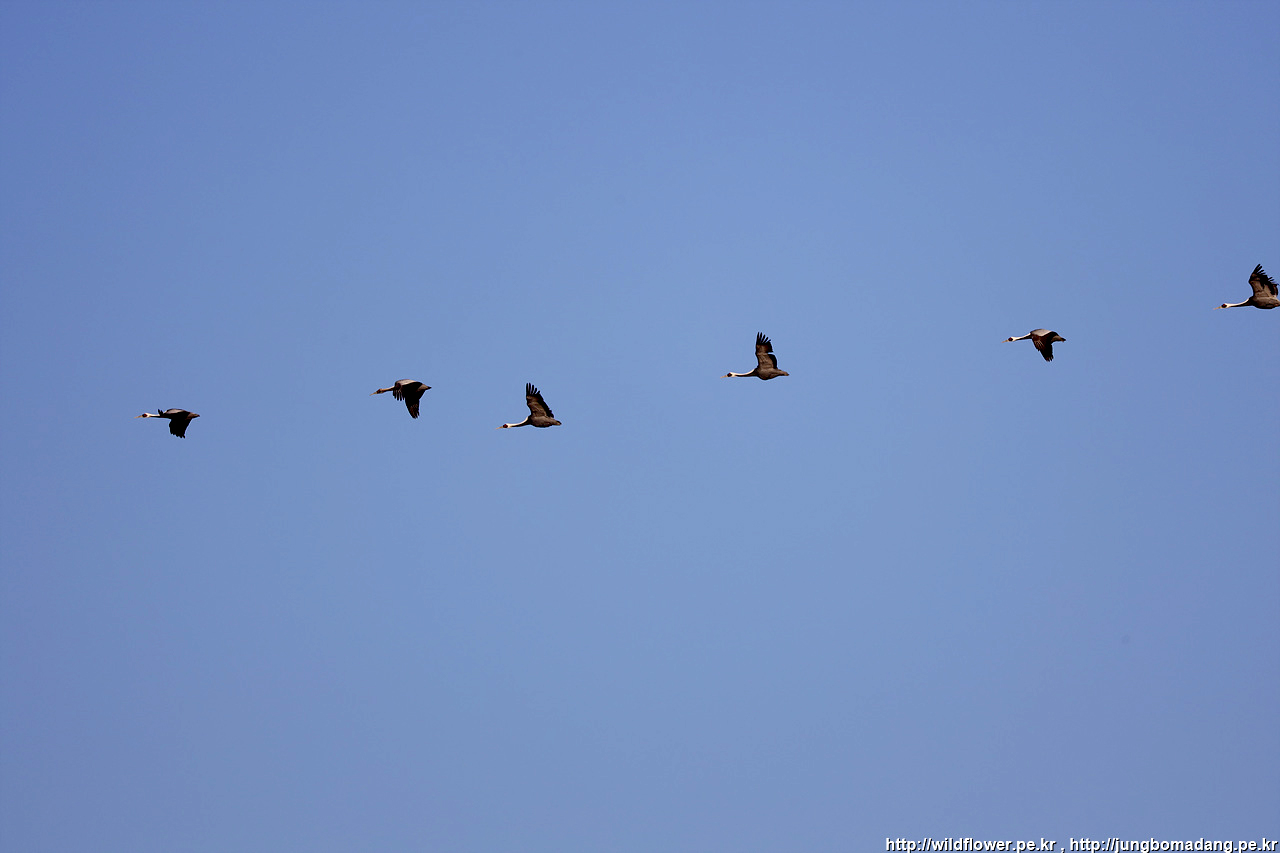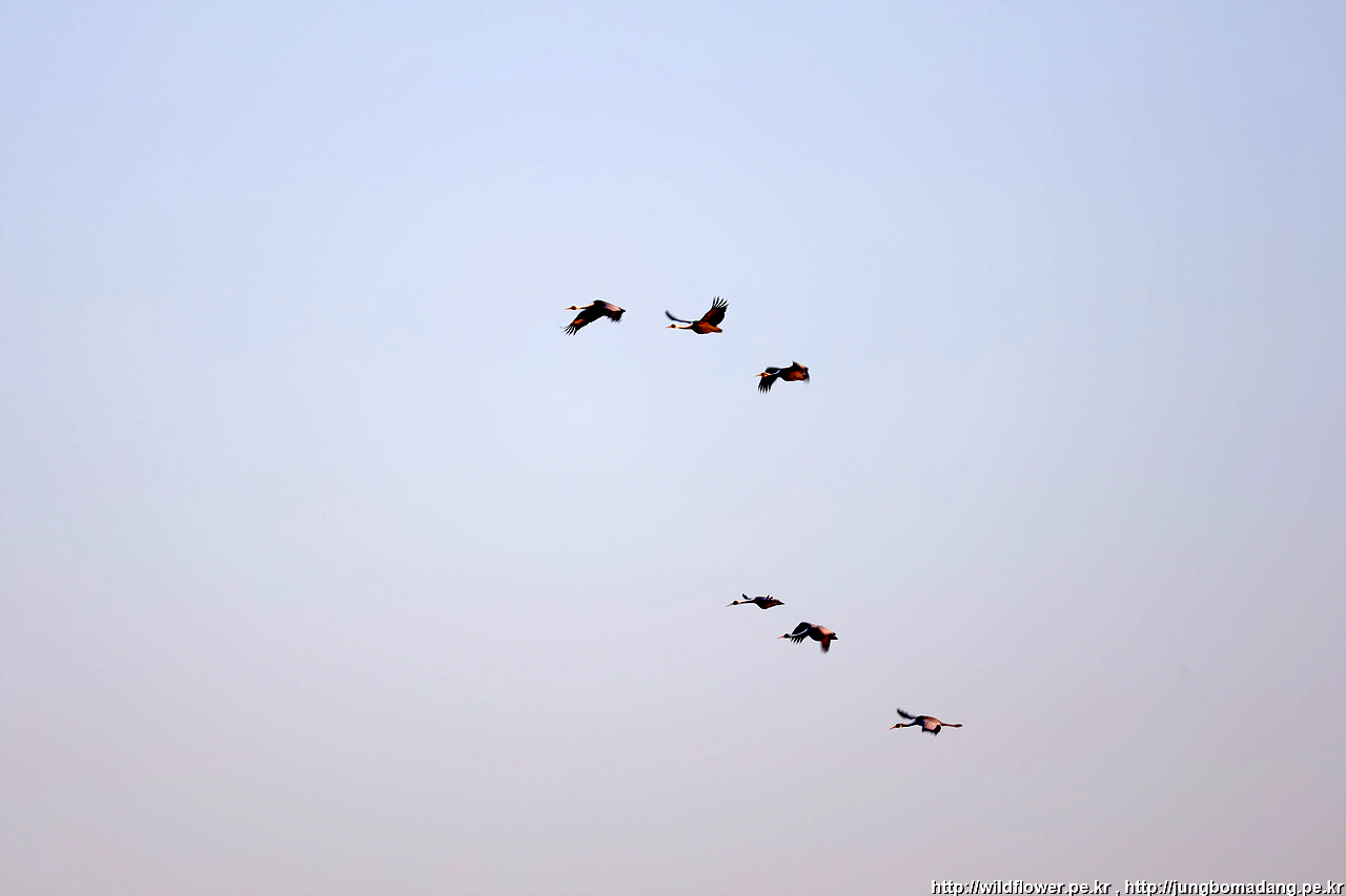 여기 저기서 꾸르륵~ 꾸르륵~ 두루미의 날개짓이 이어집니다.