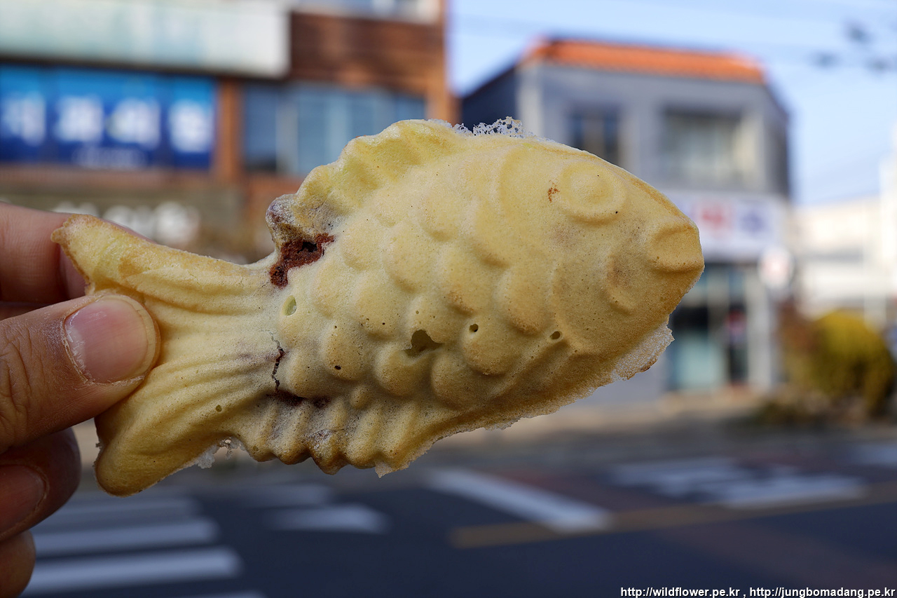 렌트카 차량 회수를 위해 표선 해변 근처까지 가는 201번 버스를 기다리면서 붕어도 하나 잡아 봅니다.