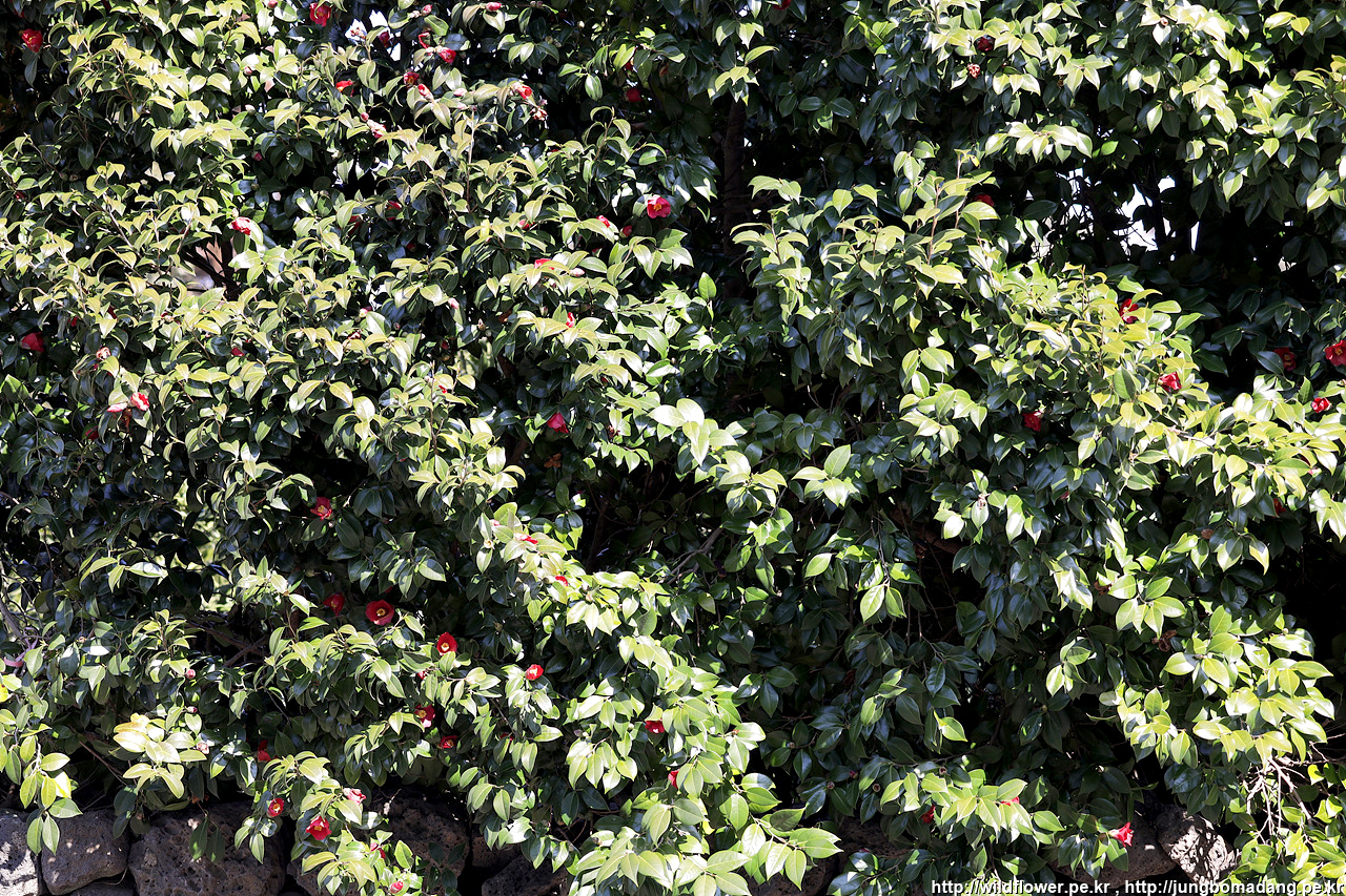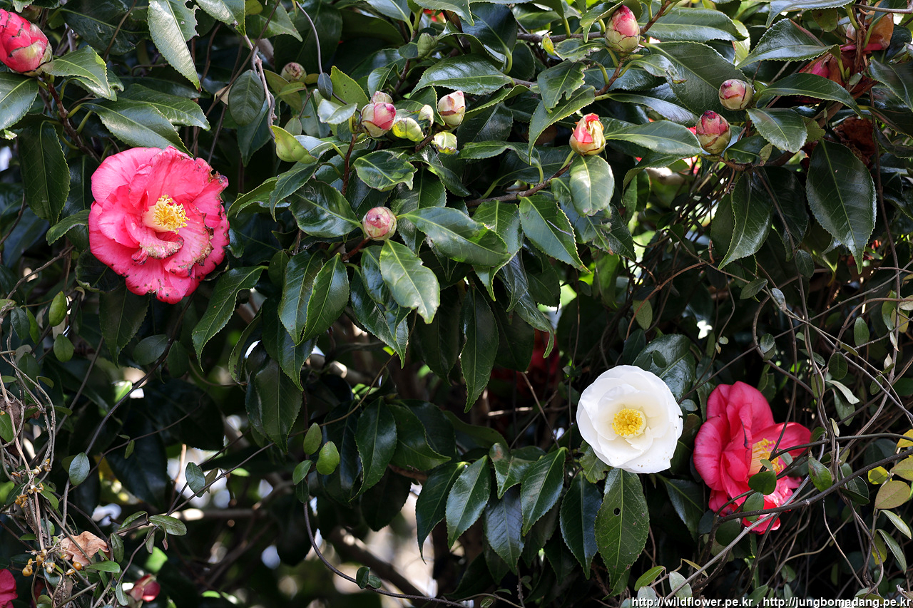 동백인데 흰 꽃도 함꼐 있네요. 같이 있는 건 첨 봅니다.