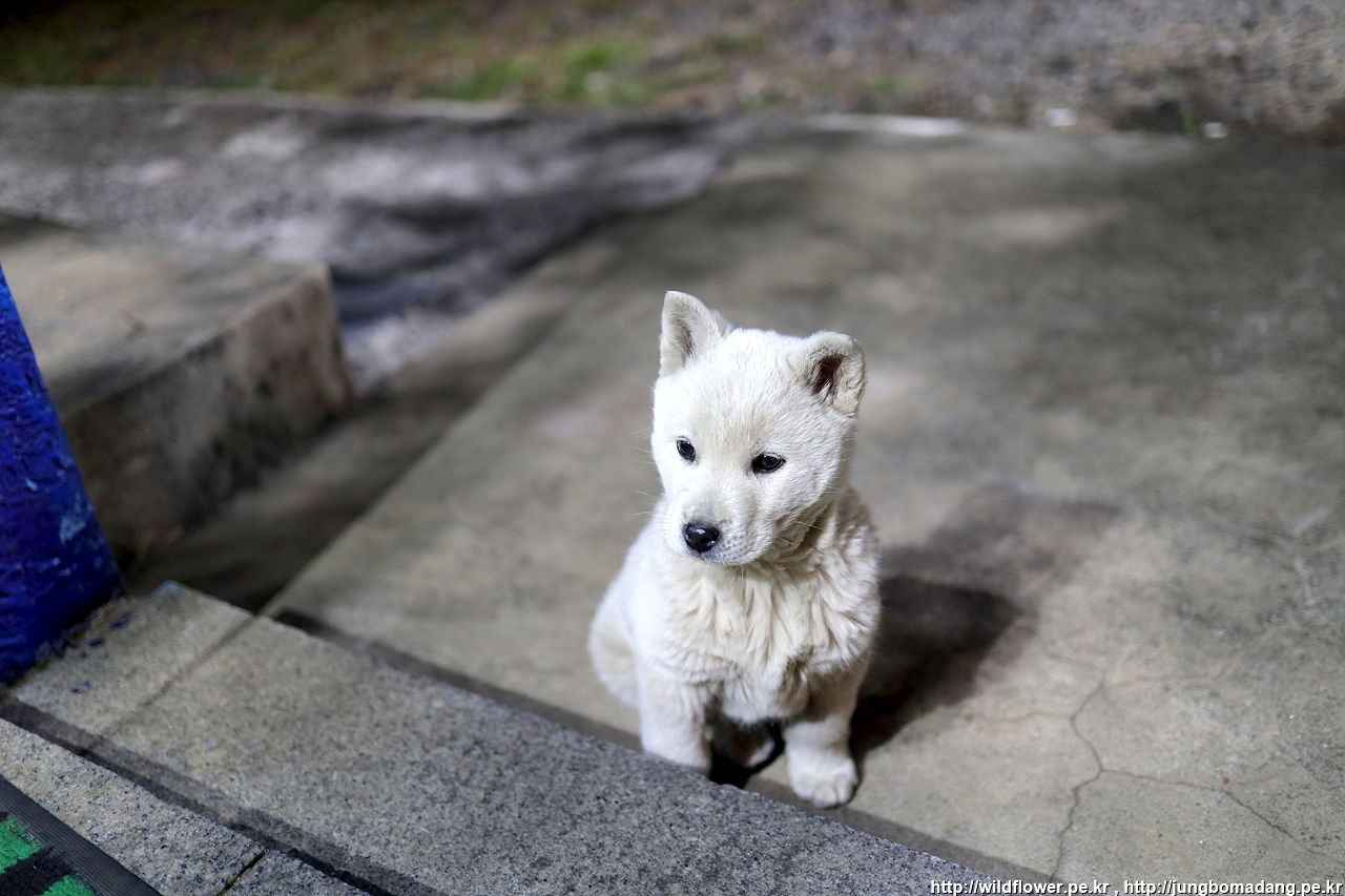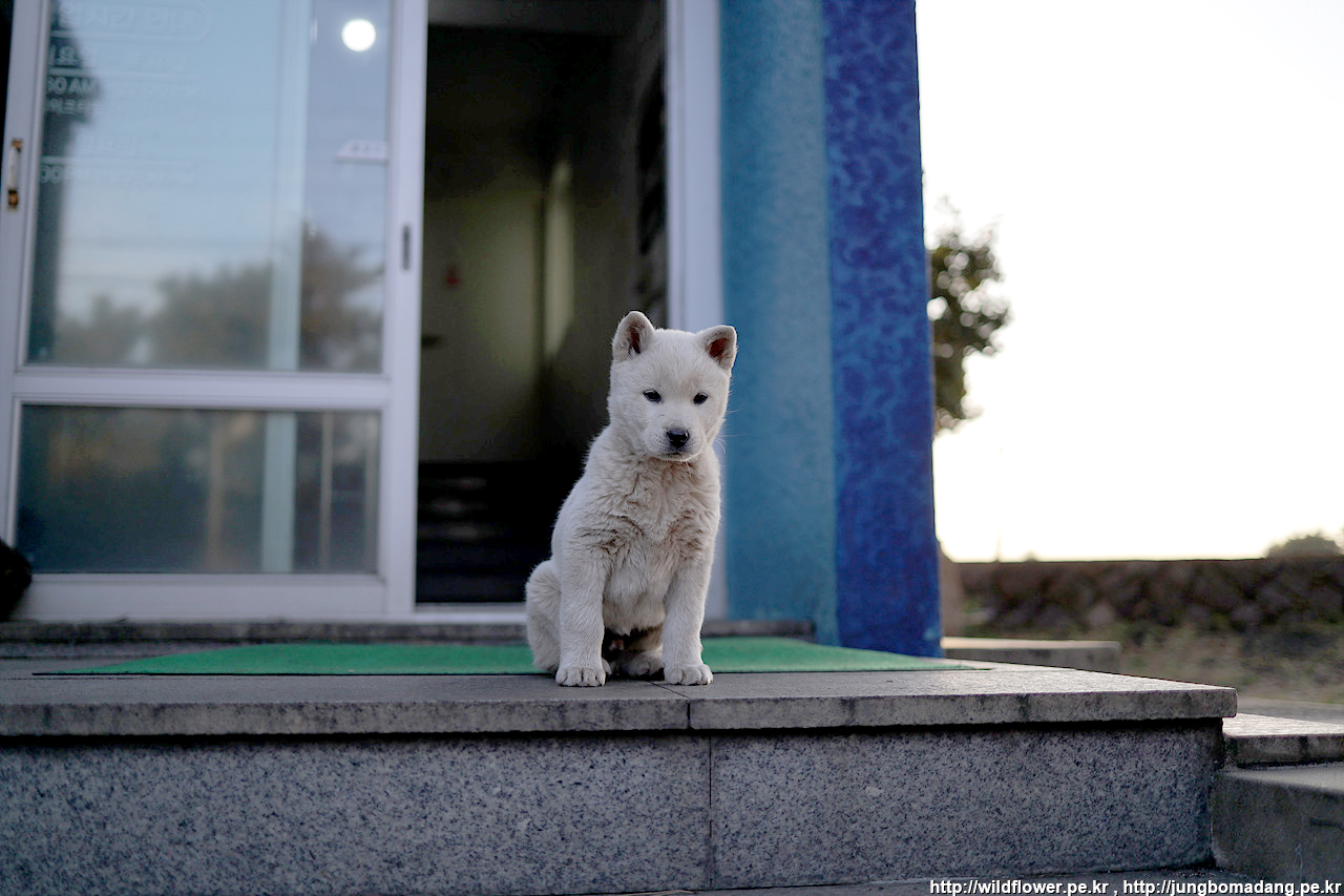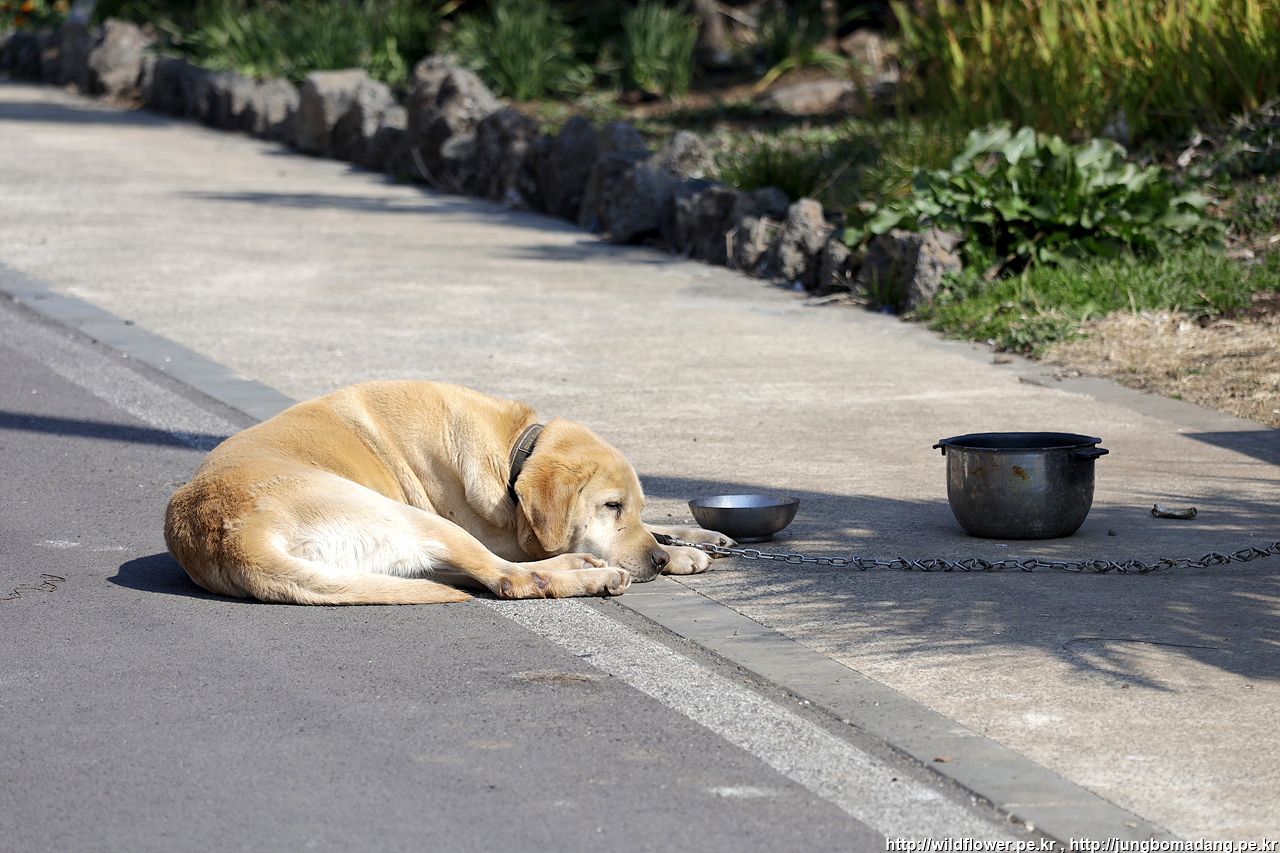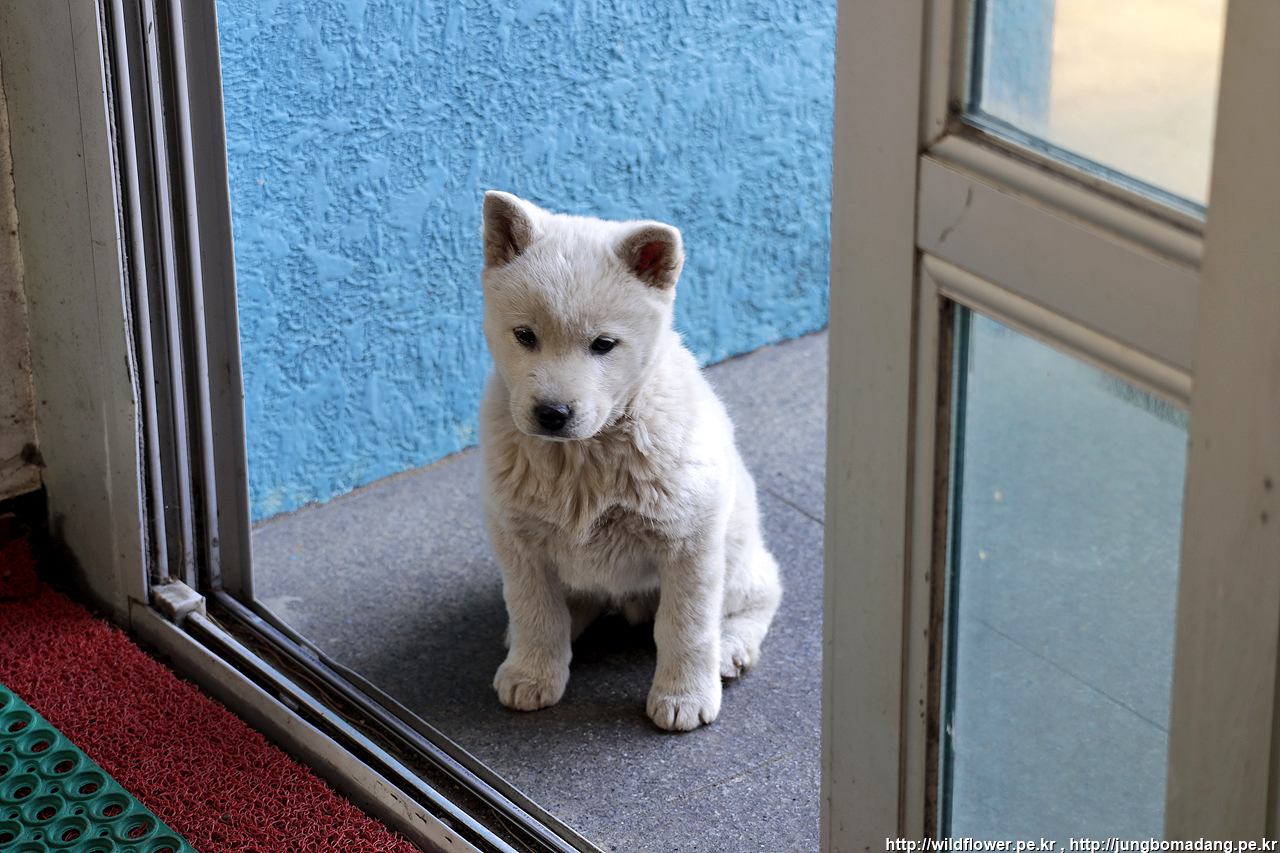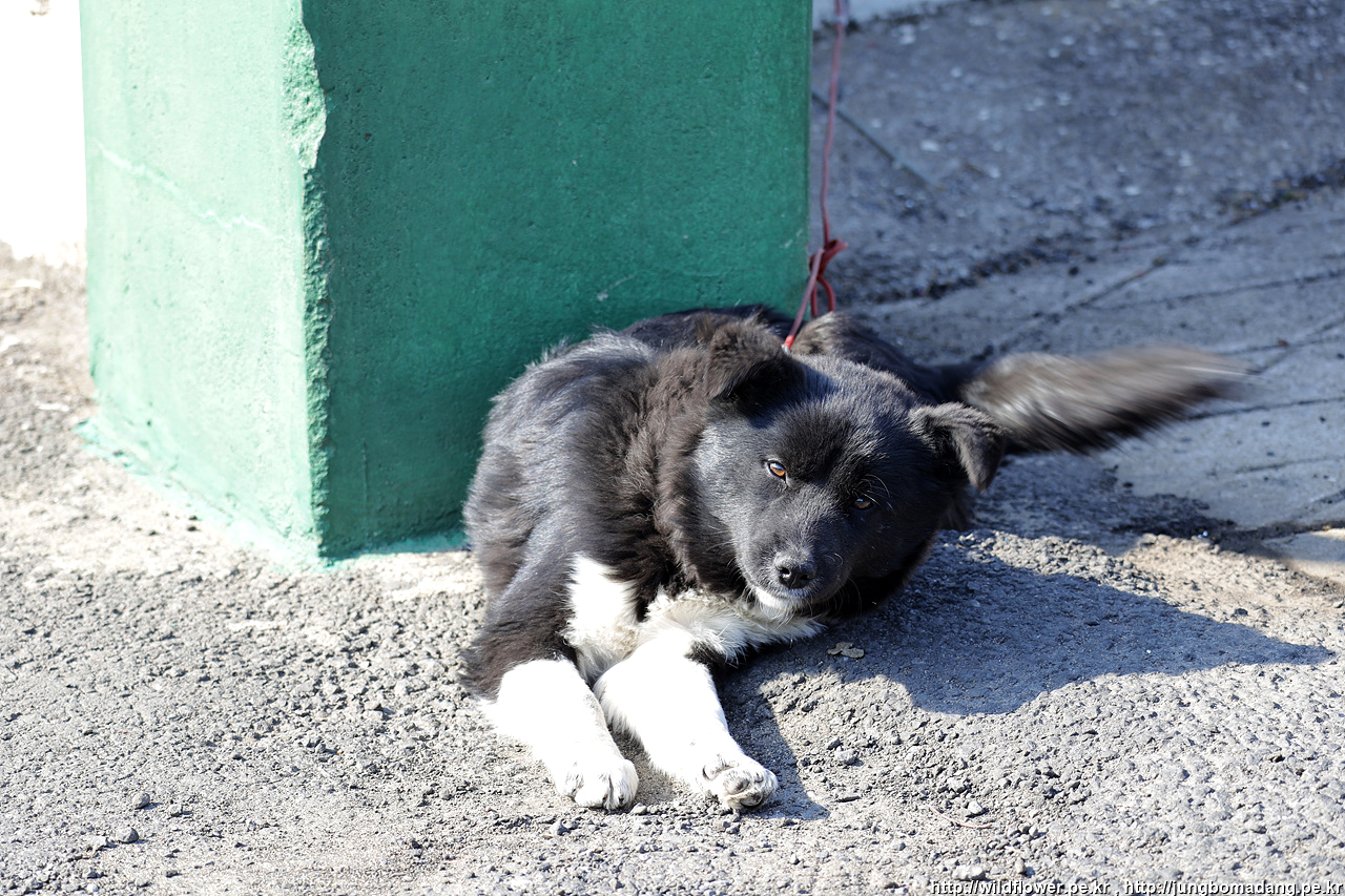 밥 묵고 나오니 잘 지키고 있는 강아지.