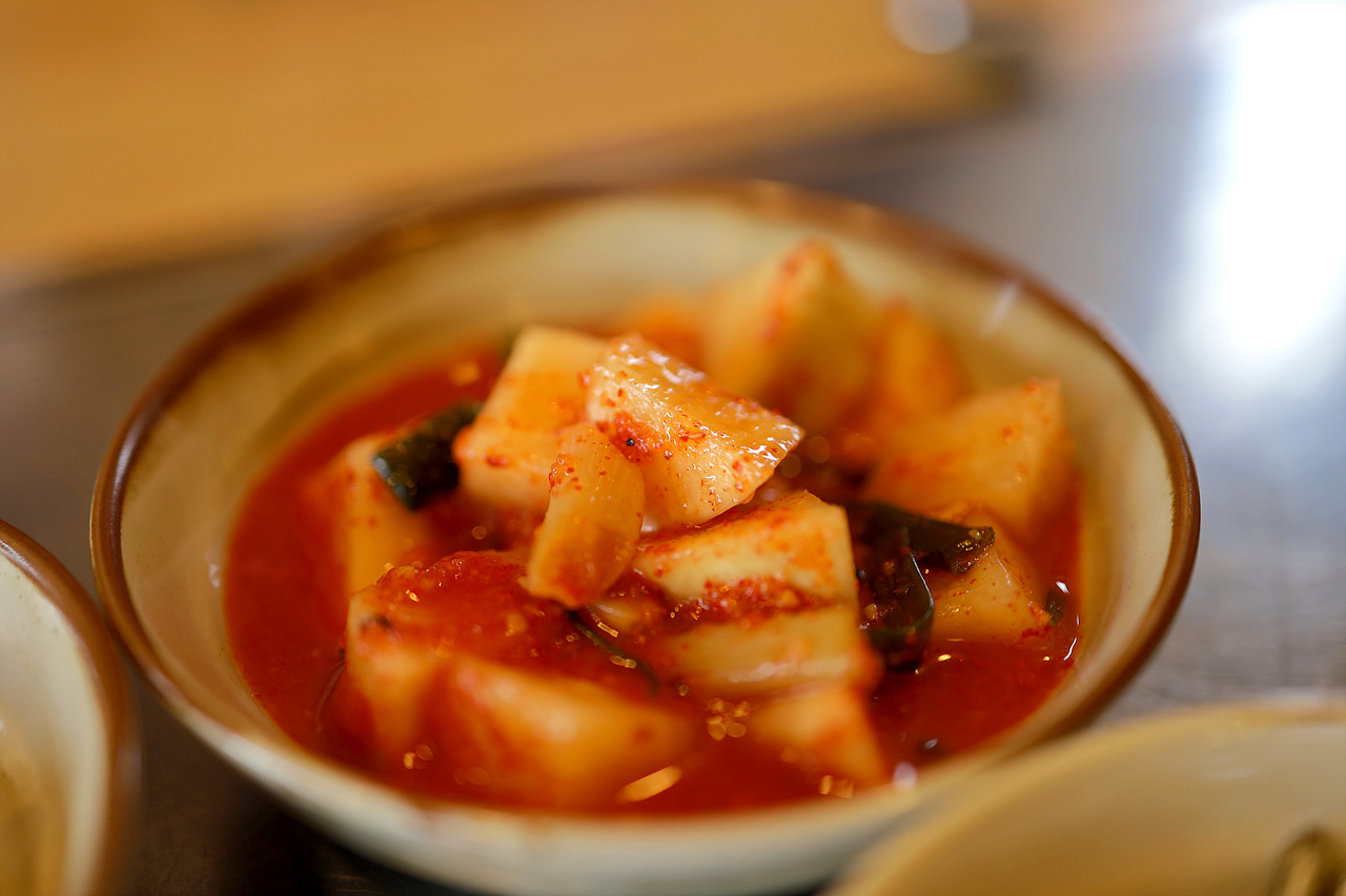 깍두기를 버리지 않는 한국 답게 깍두기가 맛나네요.