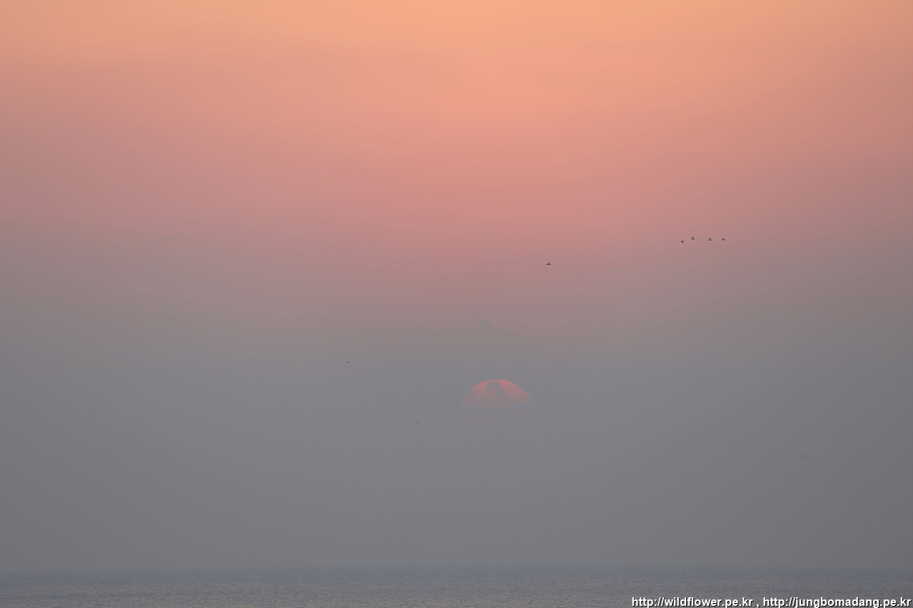 뿌연 안개 사이로 햇님이 조금 늦은 등장을 합니다.