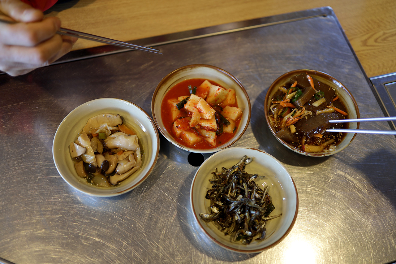 다들 젓가락이 밥도 나오지 않았는 데, 맛난 반찬 공략하느라 바쁘십니다. 특별히 도토리묵도 주시고.