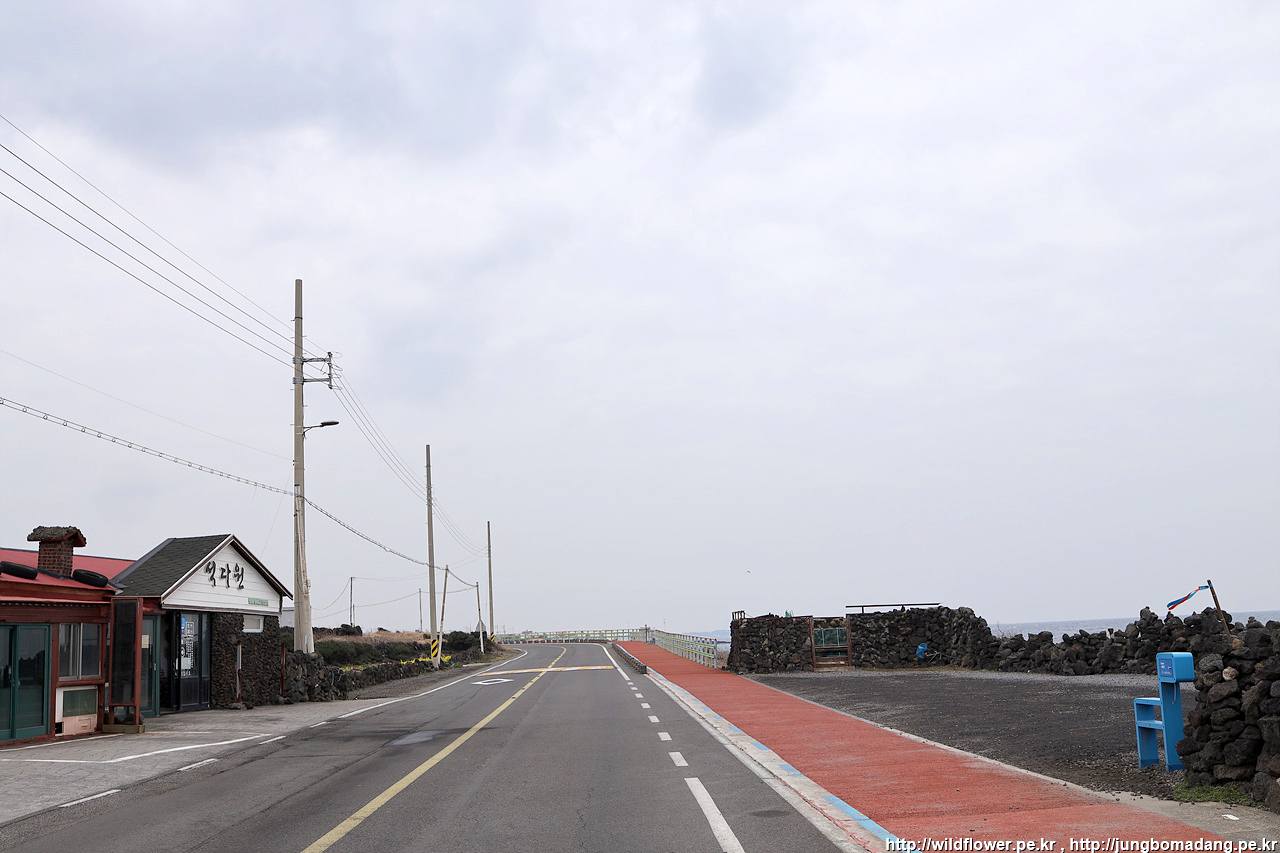 3코스 끝나고 다시 온평 포구로 되돌아 가기 위해 201번 버스 정류장으로 가는 길...