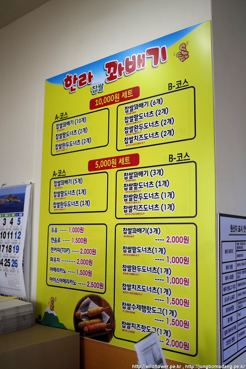 들머리인 온평포구 인근 꽈배기집에서 행동식 구매.