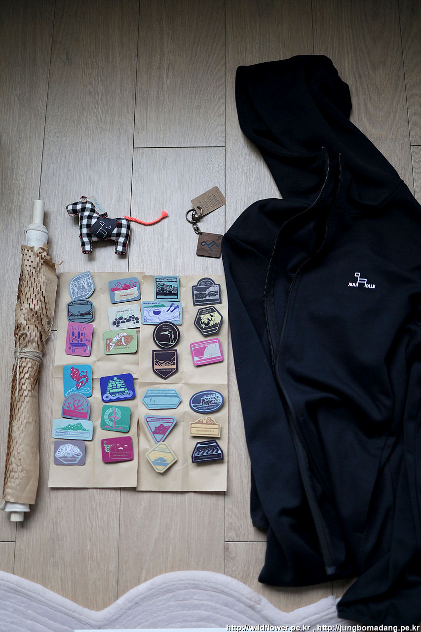 올레 안내소의 쇼핑한 물품들. 족자는 이미 8년전에 종주를 했기에 기념으로 구매합니다. 7만원. 우측에 후드티는 3만8천원.
