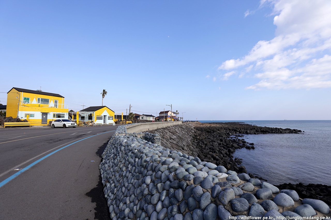 3코스 끝나고 다시 온평 포구로 되돌아 가기 위해 201번 버스 정류장으로 가는 길...