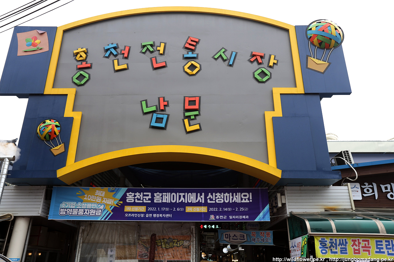 홍천전통시장 남문으로 침투를 합니다. 동서남북으로 문이 있는 데, 남문이 젤 화려한 거 같습니다.