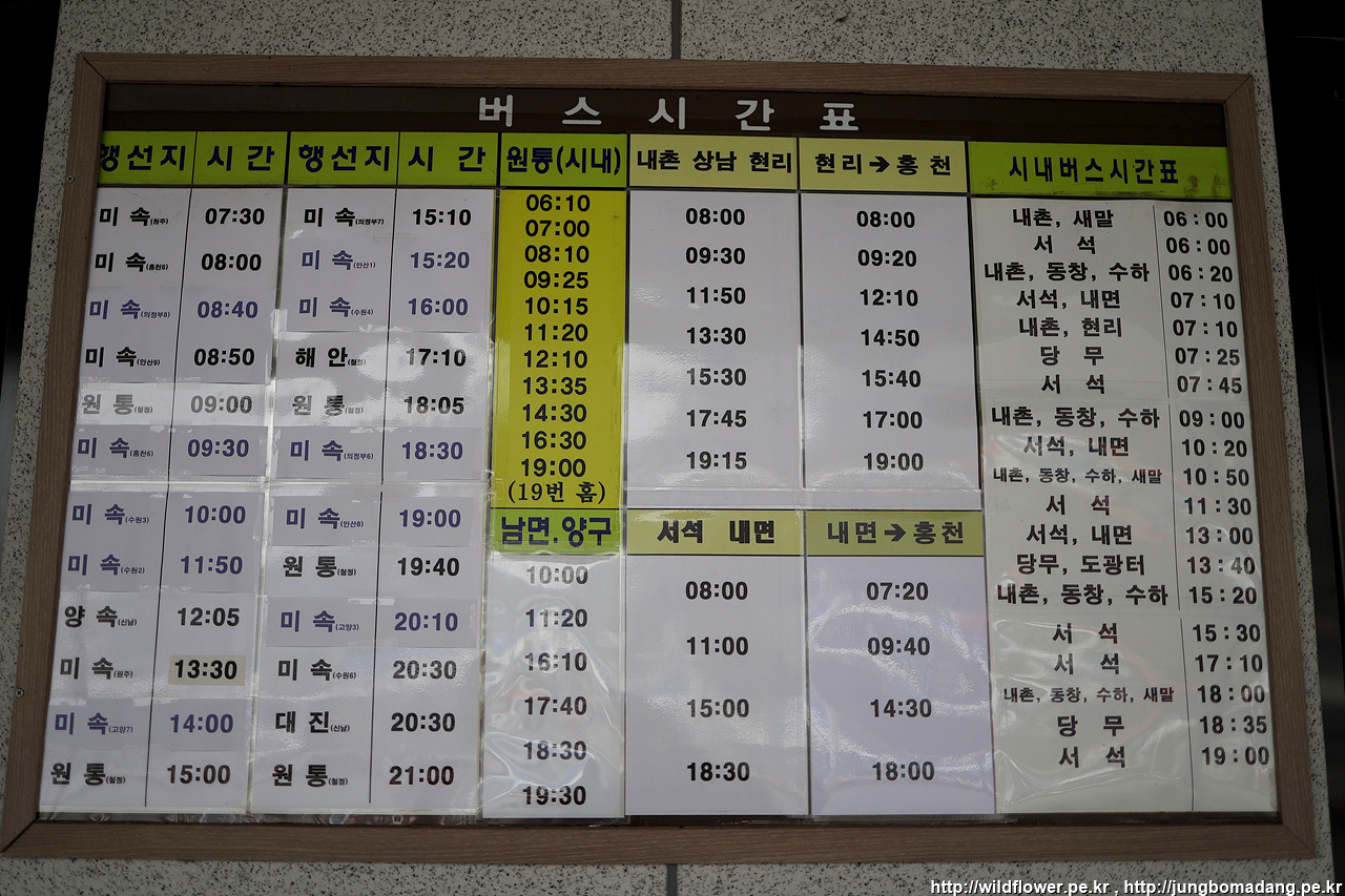출발 전 홍천 터미널 시내버스 시간표도 한 컷!