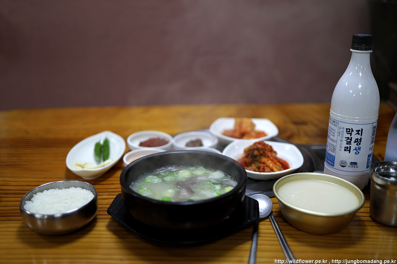 아무래도 시간을 때워야 하지 싶어, 순대국 파는 식당에 들어와서 소머리국밥과 막걸리 한 병 주문합니다.