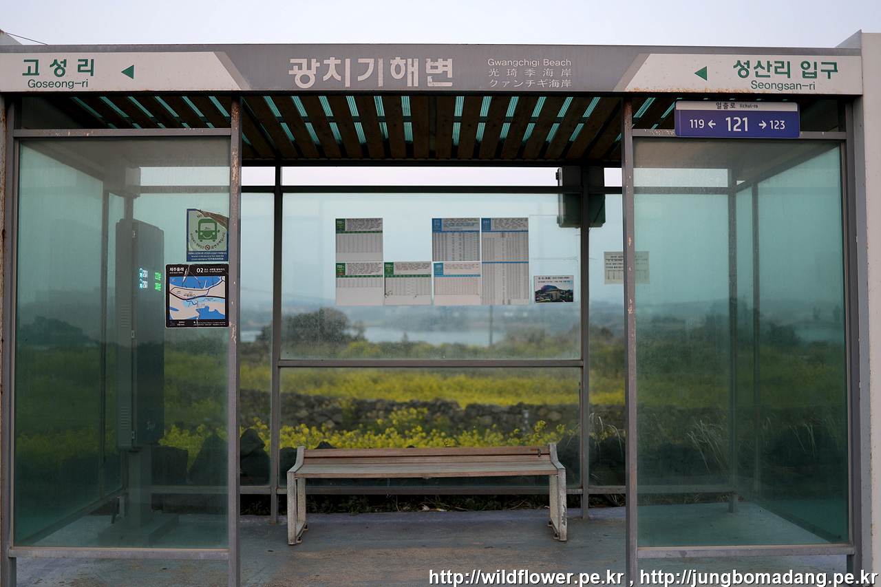 하룻밤을 보내고 일출을 볼 수 있을까 광치기해변을 기웃 기웃 하는 데... 구름이 낮게 그리고 짙게 깔려 일출은 그냥 포기하고, 계획한 대로 버스를 타고 첫번째 목적지인 새끼노루귀 군락지로 향합니다.