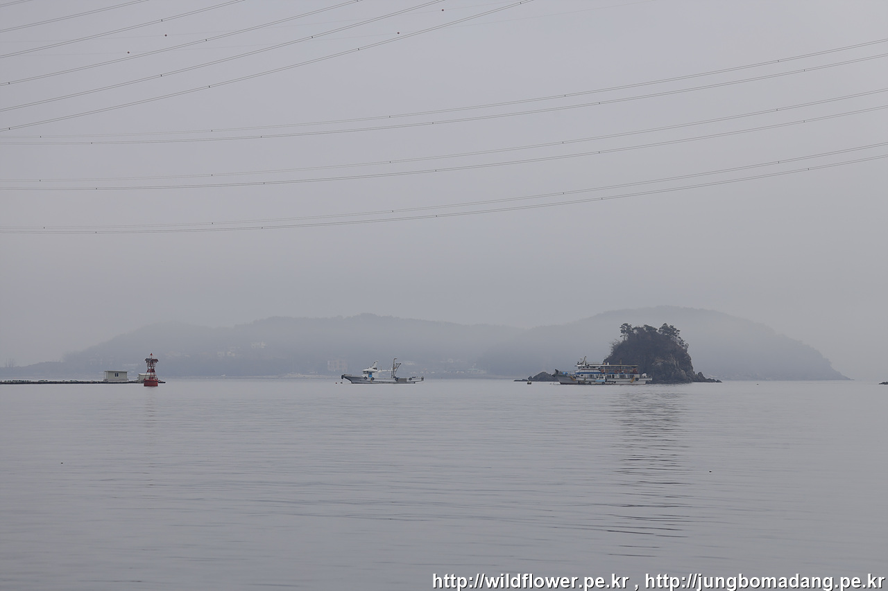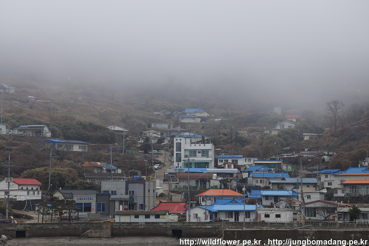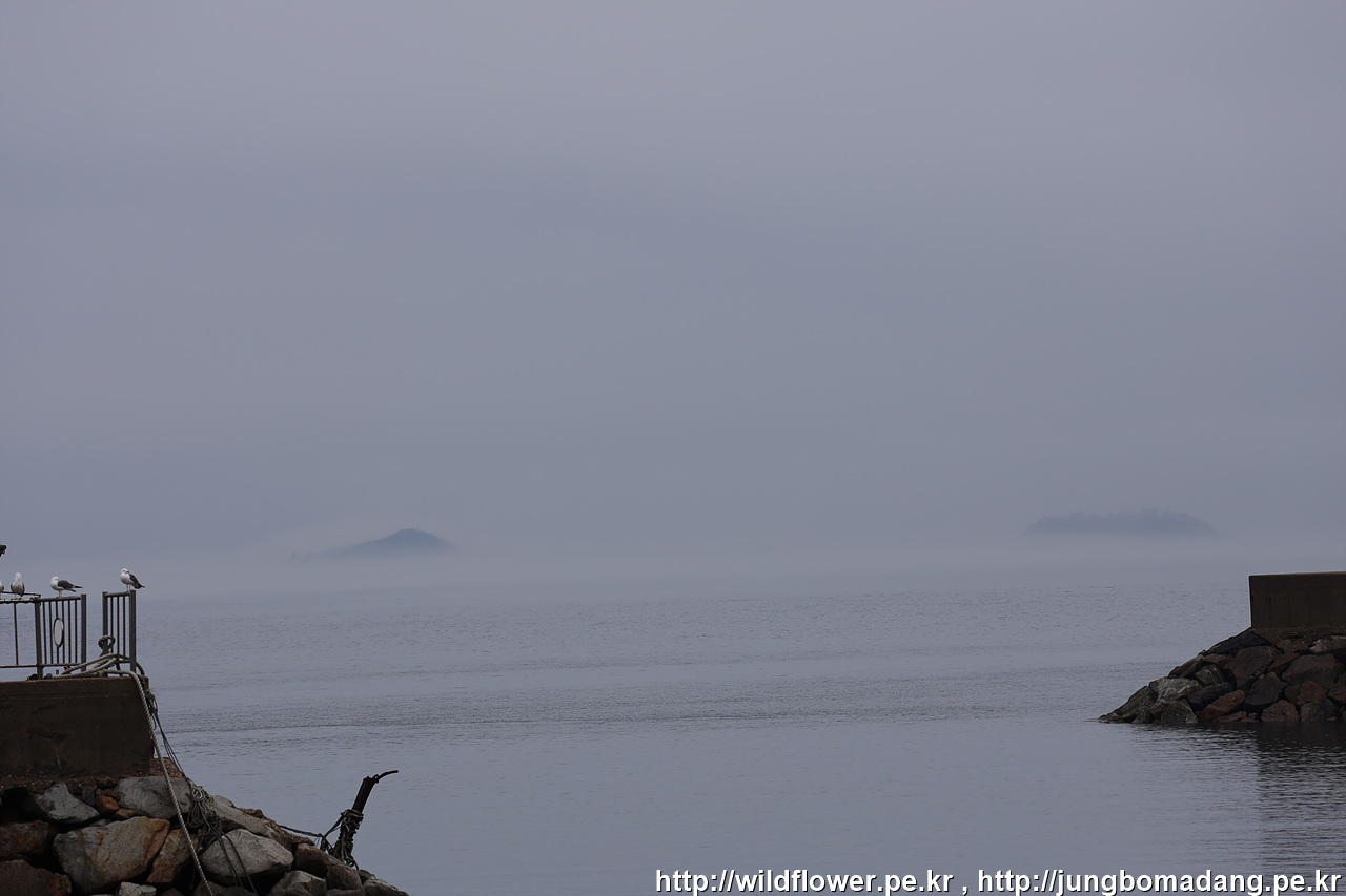 해무가 뒤덮은 풍도마을이 아름답습니다.