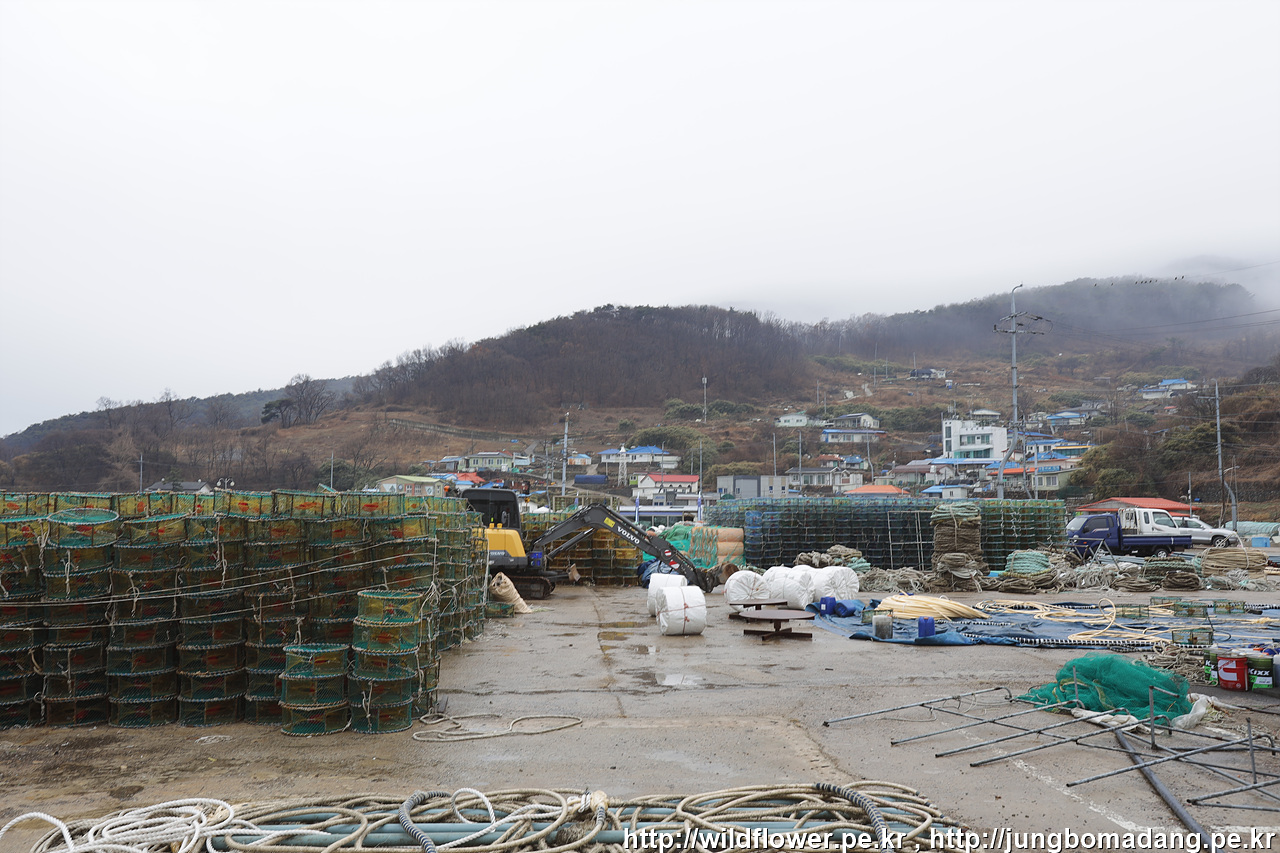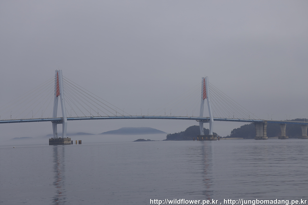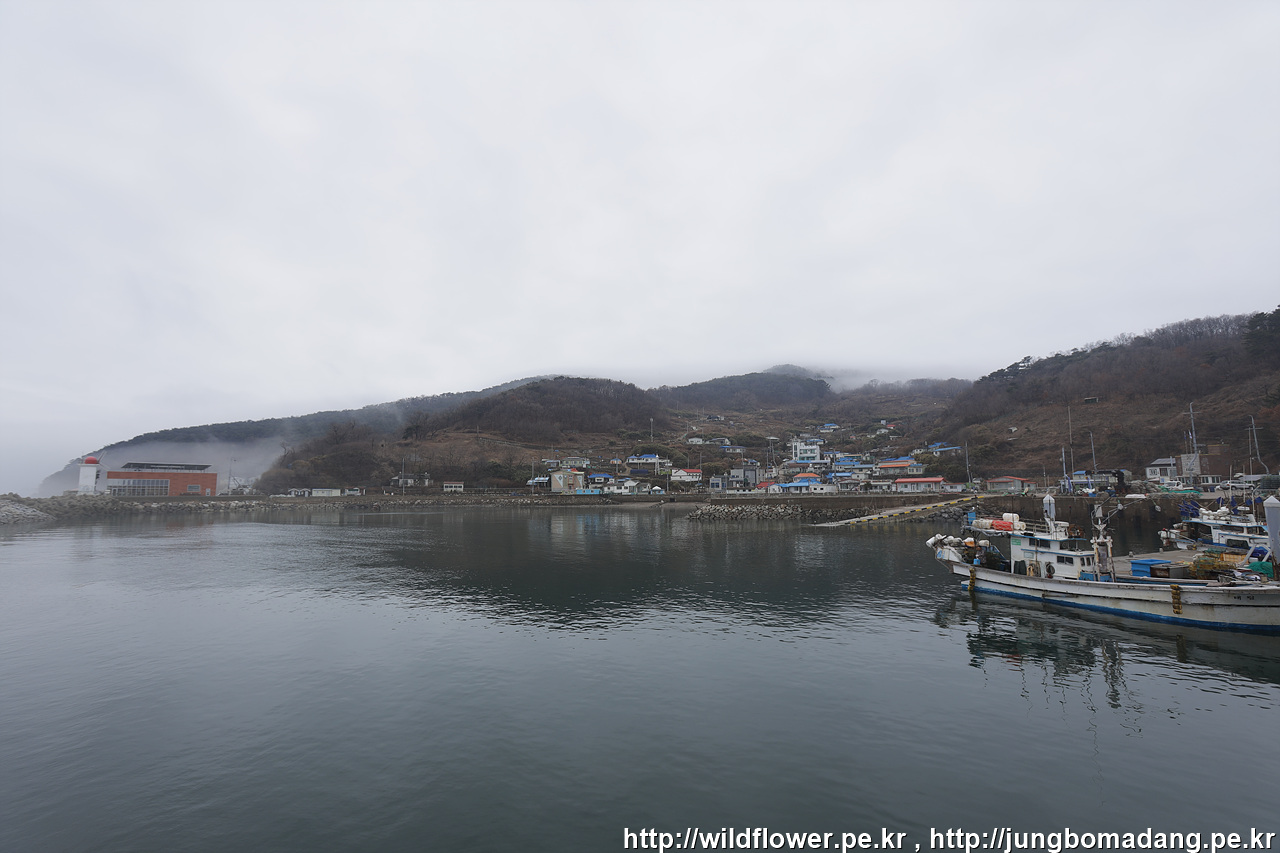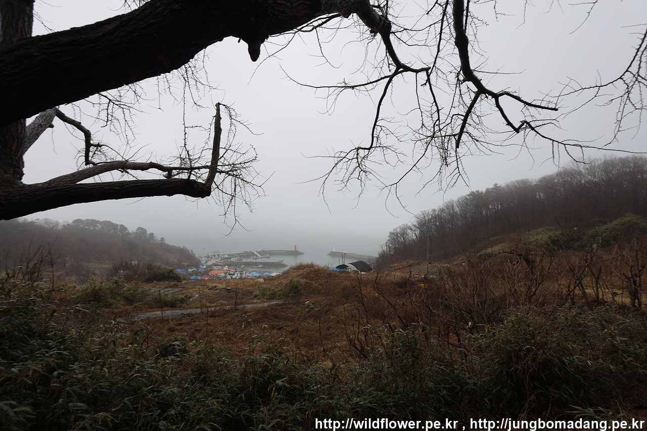 해무가 뒤덮은 풍도마을이 아름답습니다.