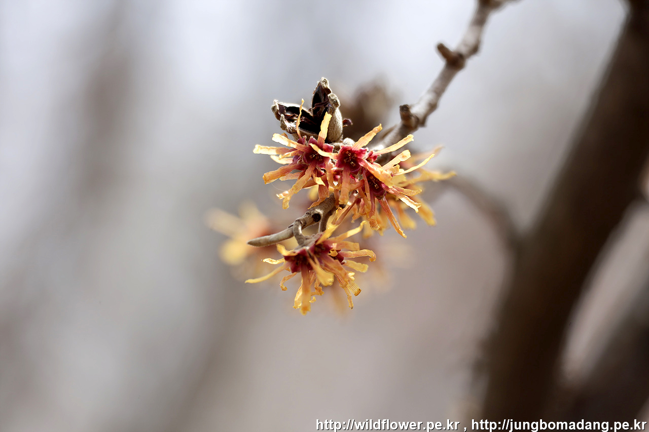 몰리스풍년화 - 풍년화와 비교했을 떄, 노란 꽃잎이 두배 정도 긴 것이 특징입니다.