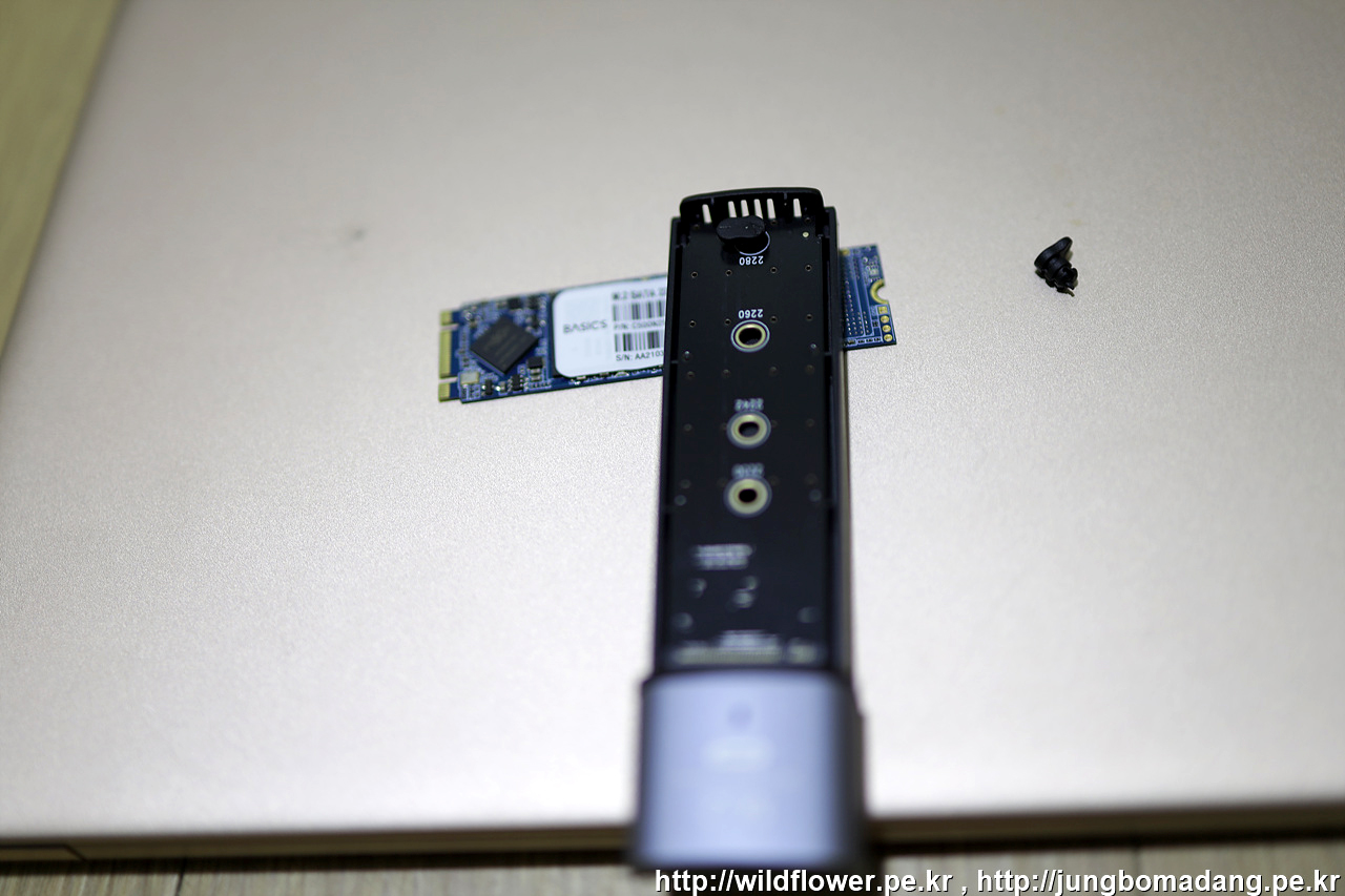 우선 고정을 위해 나사 대용으로 제공된 부속을 2280 홈에 꽃은 후에